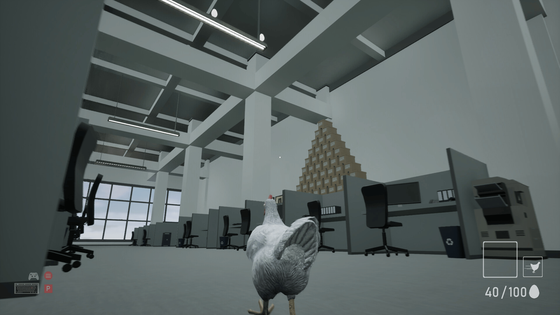 A Chicken In The Office is a single-player game where you play as a chicken who has lost everything. Recover your eggs, make your way through each floor, and take revenge on the Stealing Eggs Corporation!