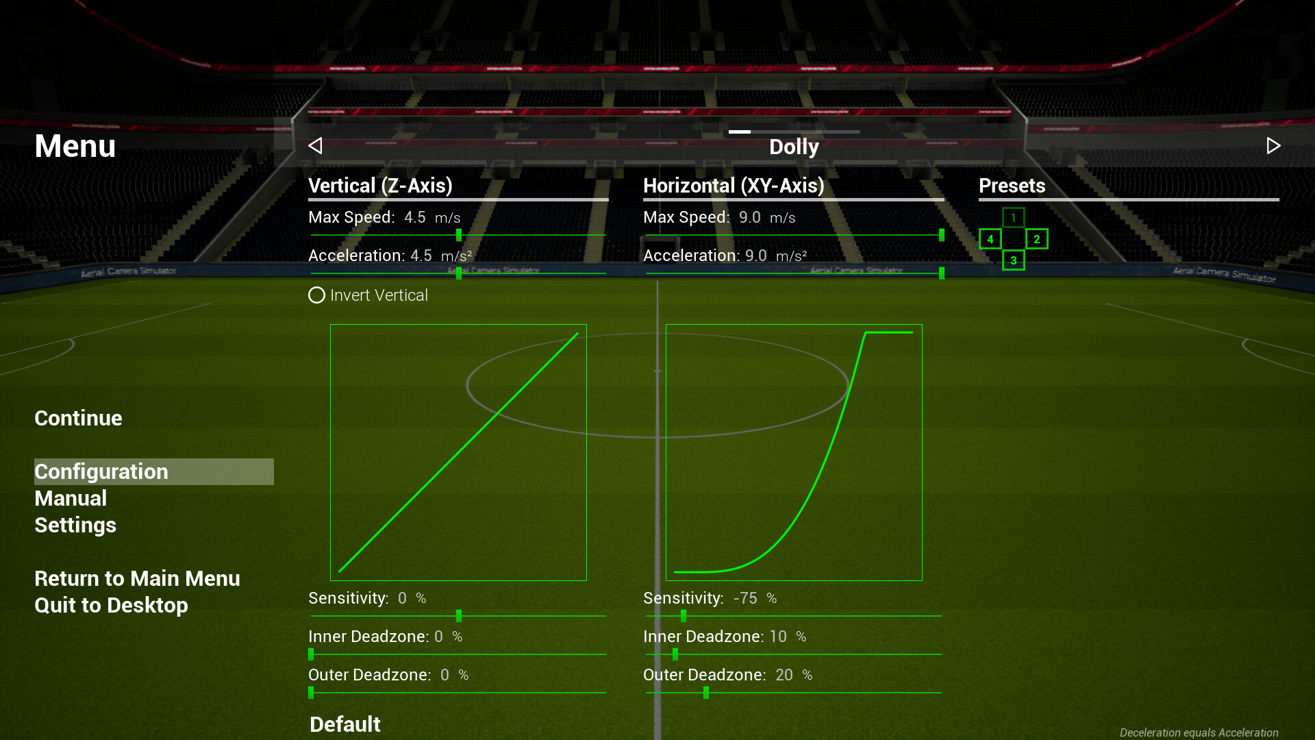 Unlike other flight sims, mastering a cable camera requires a different skill set. Precisely position the camera dolly within a fixed 3D space — a control entirely independent of the camera's aim. Test your spatial awareness in this unique simulation, playable solo or in local co-op.