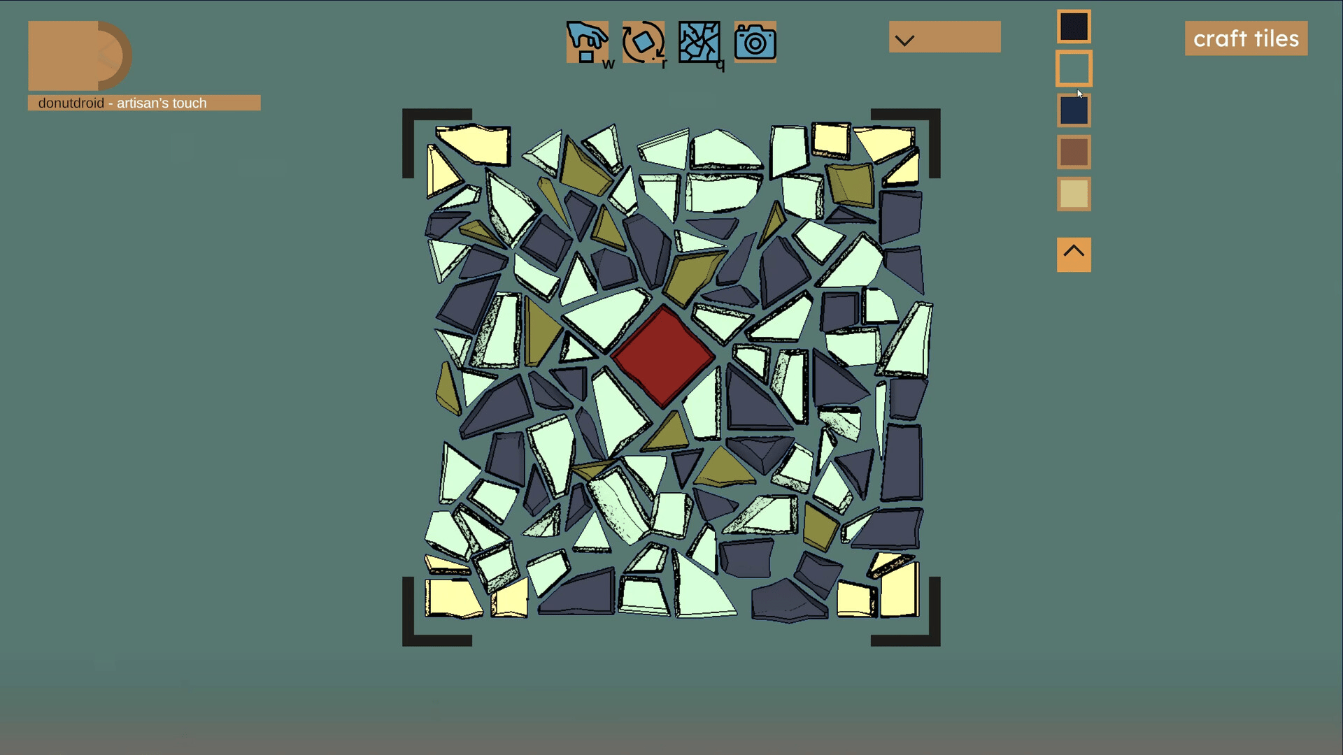 A calm sandbox game about crafting and placing tiles to create mosaics. No goals, no pressure, just you, colors, and creativity.