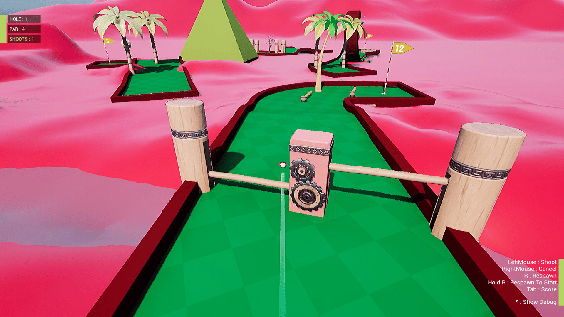 Minigolf game with 2 levels. Avoid different obstacles and traps