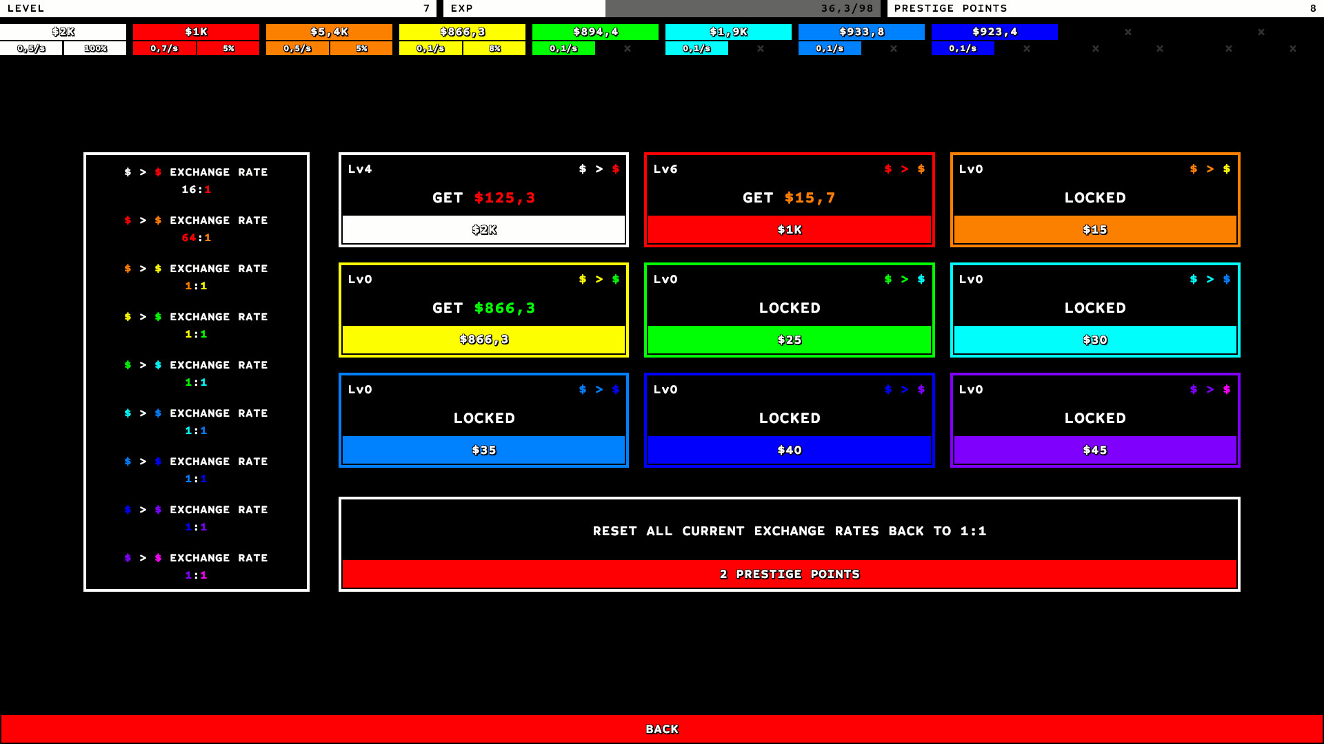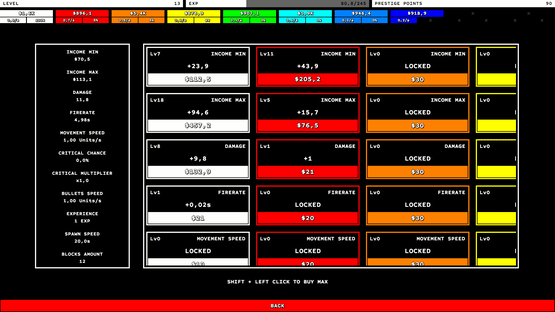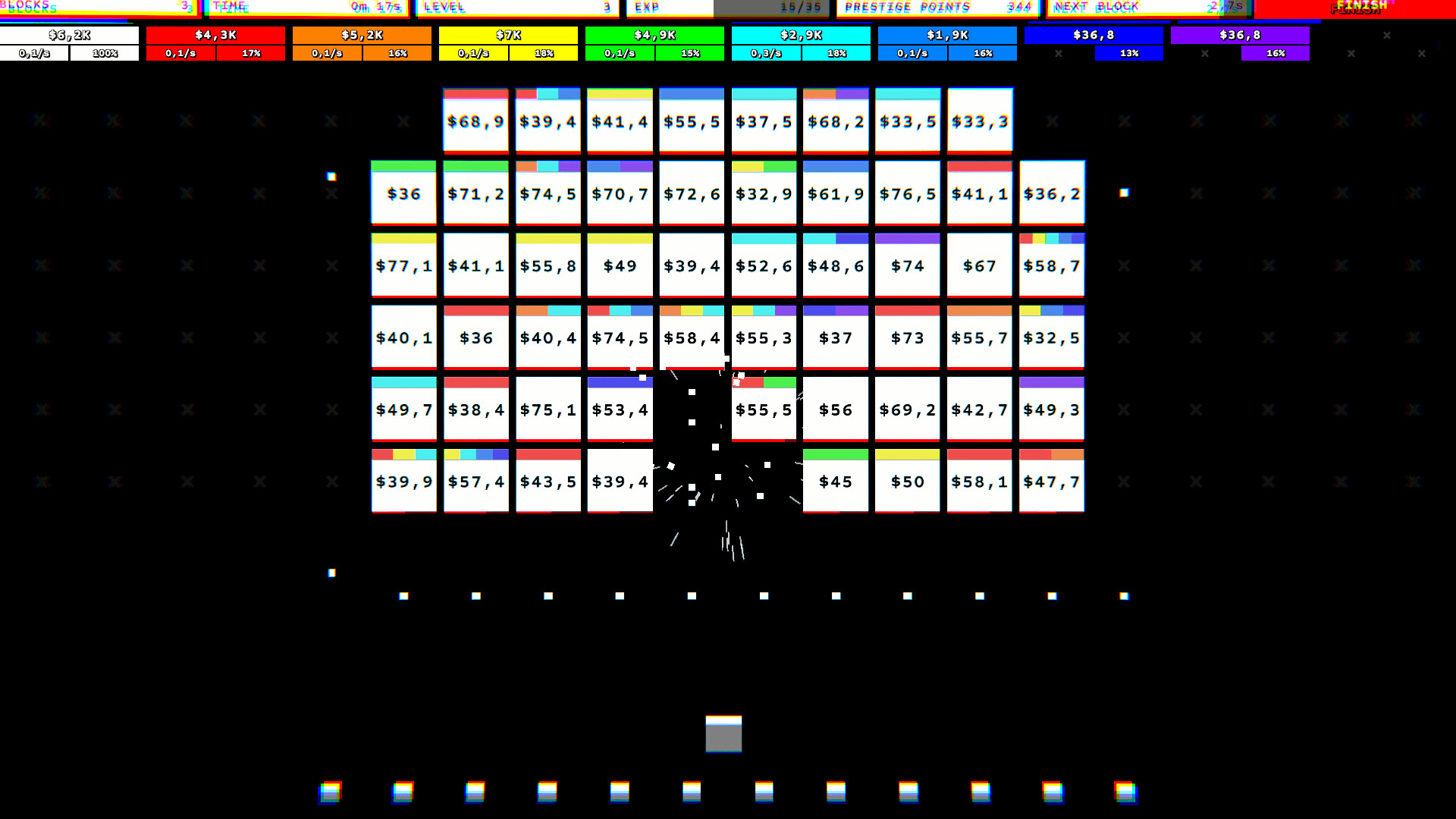 IDLE SHOOTER: A unique hybrid of an arcade shooter and an idle game. Smash blocks, collect various currencies, and boost your power and income. Use the prestige system, deploy idle turrets, or invest in mining for passive income. Choose your path!