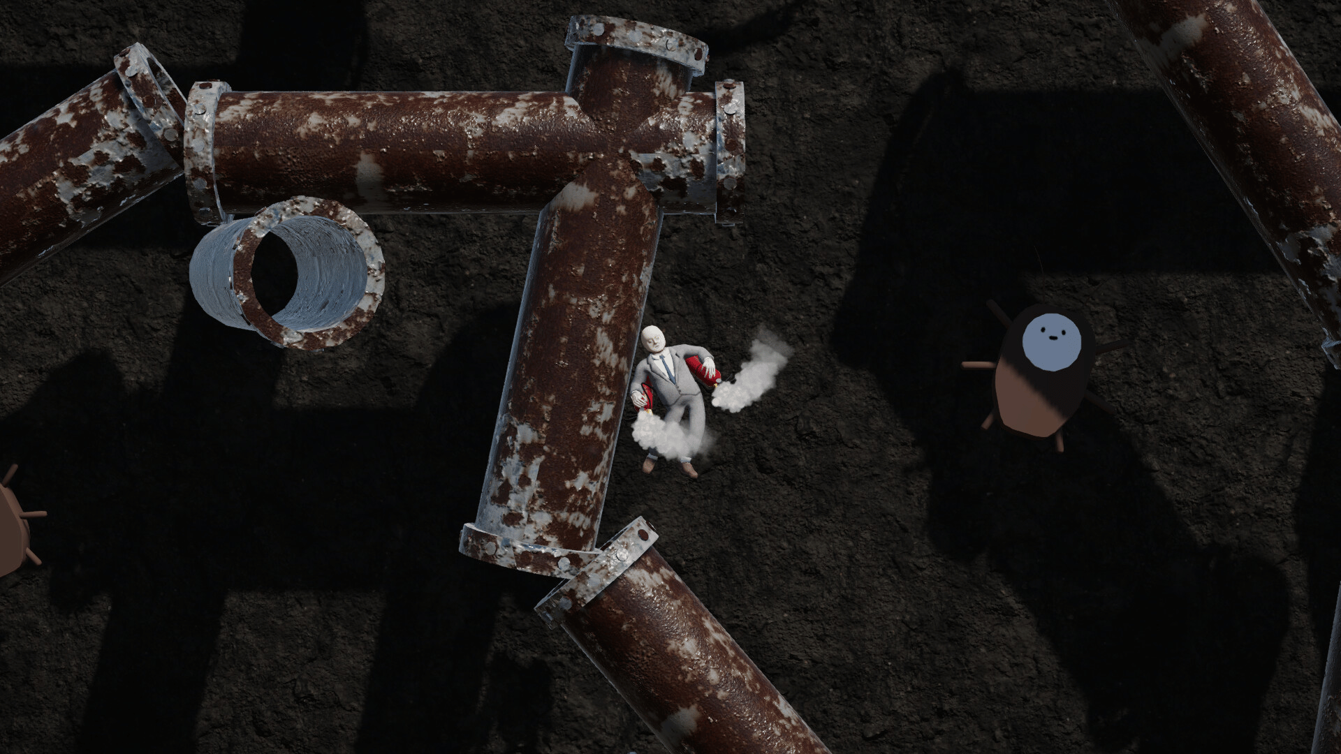Get him to the company. A huge, dark, and powerful conspiracy will engulf you. It's like a solo player race where you spray fire extinguishers to reach the goal from the starting position.