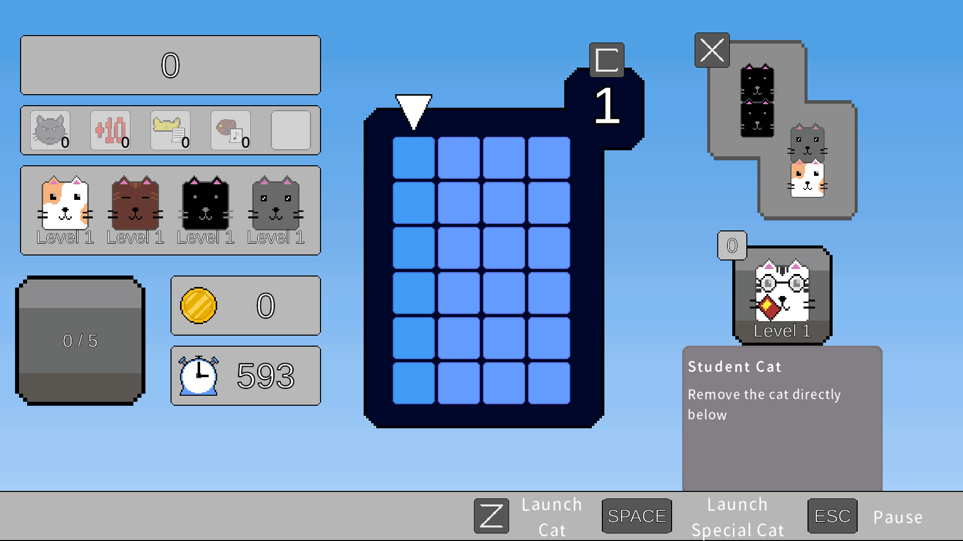 Rescue as many cats as you can within the time limit! Combine puzzle and roguelike elements to achieve the highest score possible.