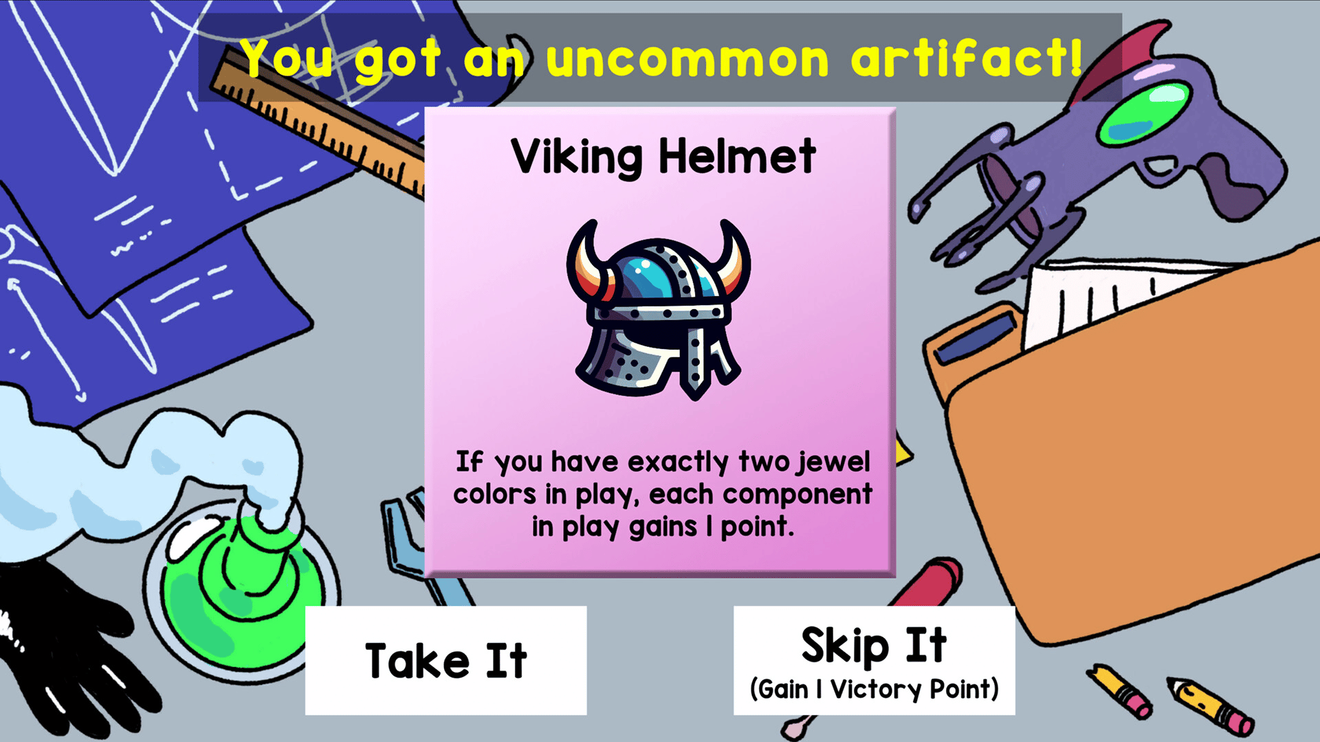 A fast-paced mad science roguelike deckbuilder. Build the ultimate doomsday device with cards, using controlled chaos and cunning play to your advantage. Defeat your puny enemies. Acquire priceless artifacts. Take over the world.