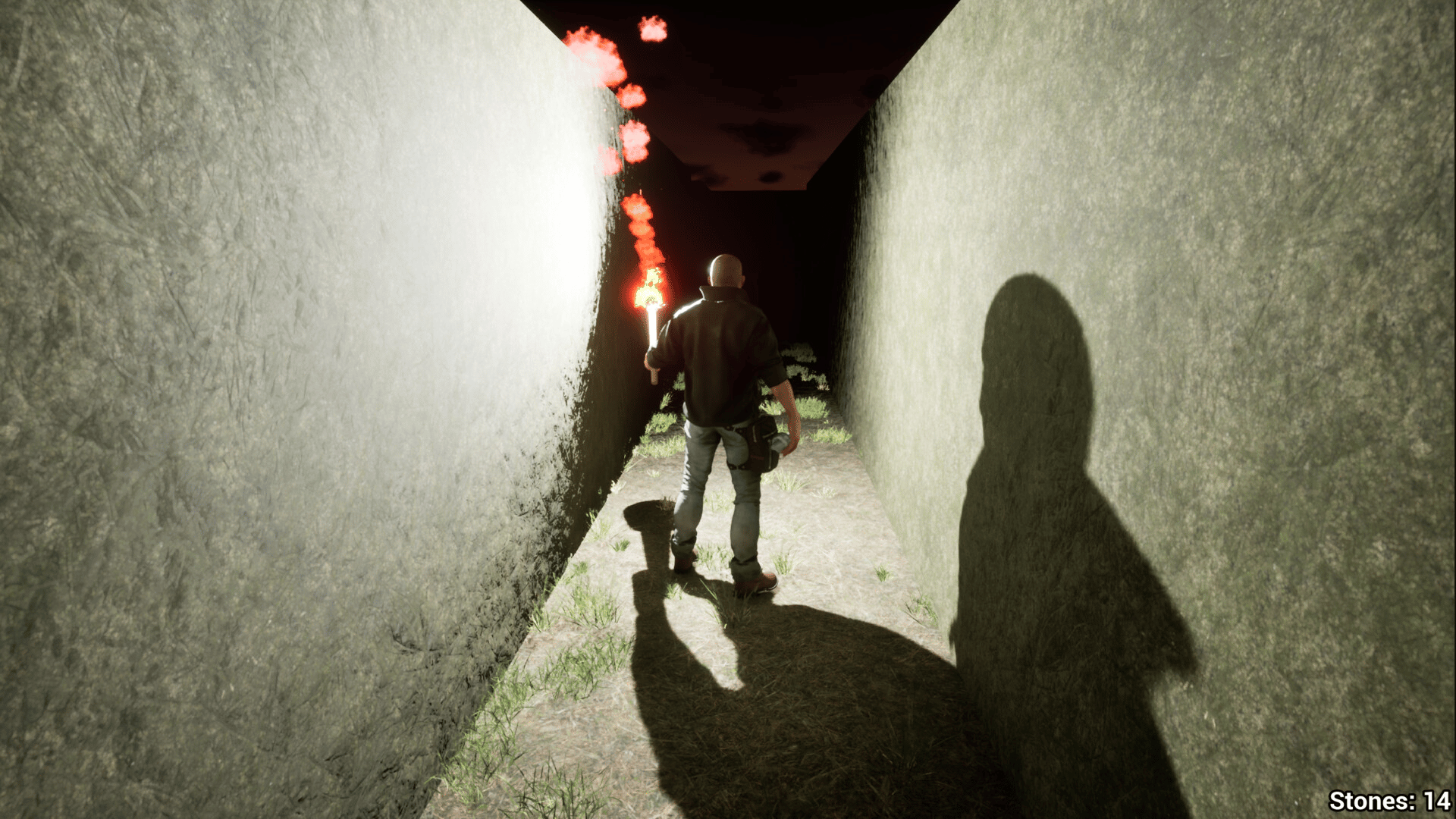 You found yourself inside a labyrinth in the night where some creatures are hunting you down, luckily you brought some stones with you, they do not seem to be useful against these monsters but you could use them to orient yourself while you try to get out the labyrinth.