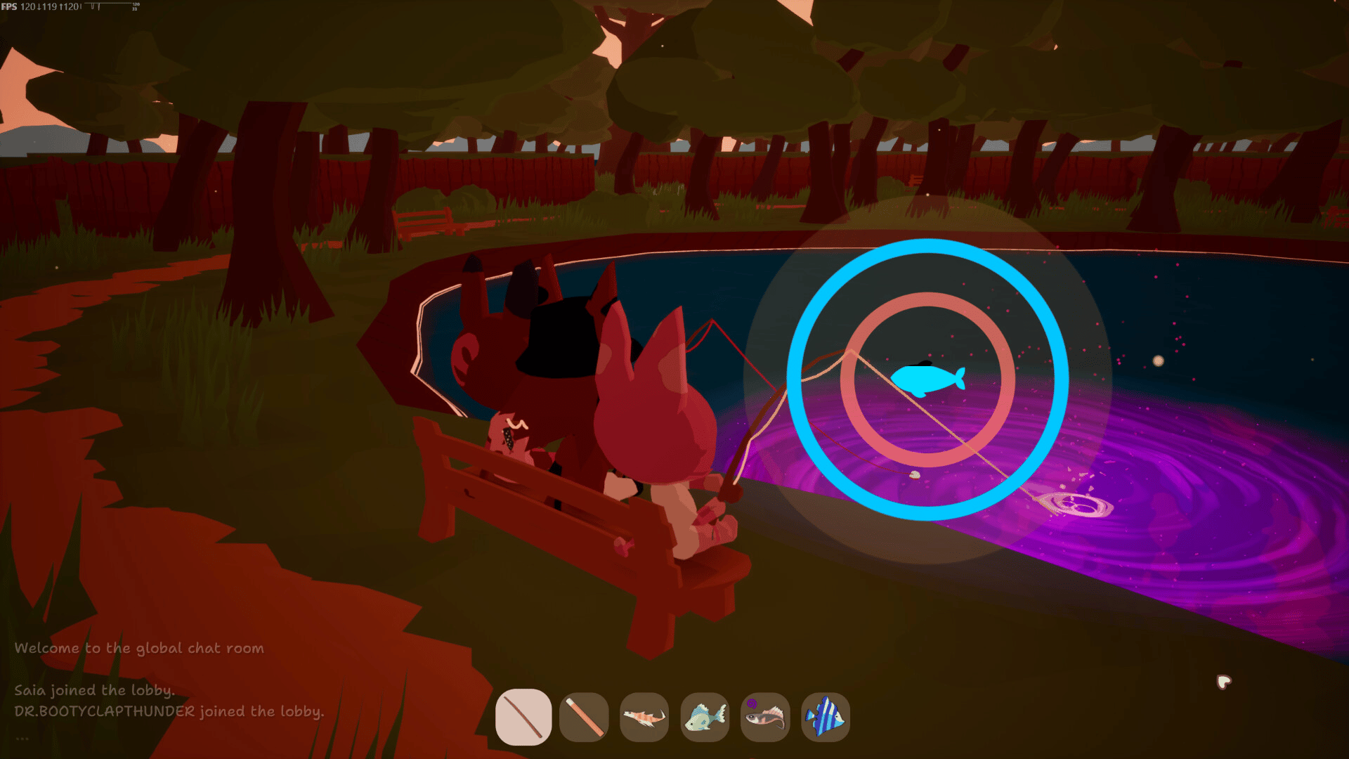 Rift Fishing is a multiplayer chatroom-focused fishing game. Fish through rifts into other worlds to catch mysterious creatures and artifacts. Make friends worldwide, paint together, and jam by the cozy campfire.