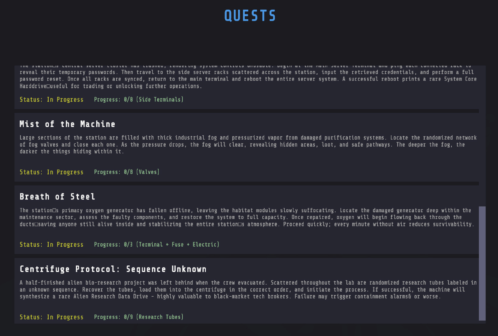 A 4-player co-op sci-fi horror game where you stealth through unstable research stations, scavenge vital resources, complete high-risk contracts, and extract before the facility overwhelms your team.