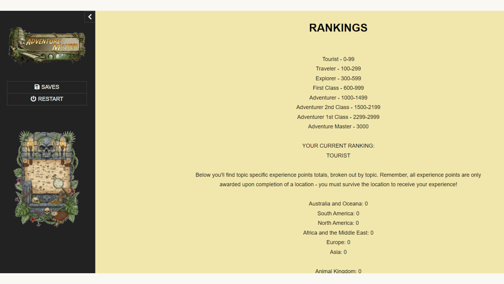 This unique trivia game is the perfect way to be tested to see if you could actually follow in the steps of the famous adventurers, Indiana Jones and Nathan Drake with topics including outdoor survival skills, handguns, geography, world history, SCUBA, plane flight and so much more.