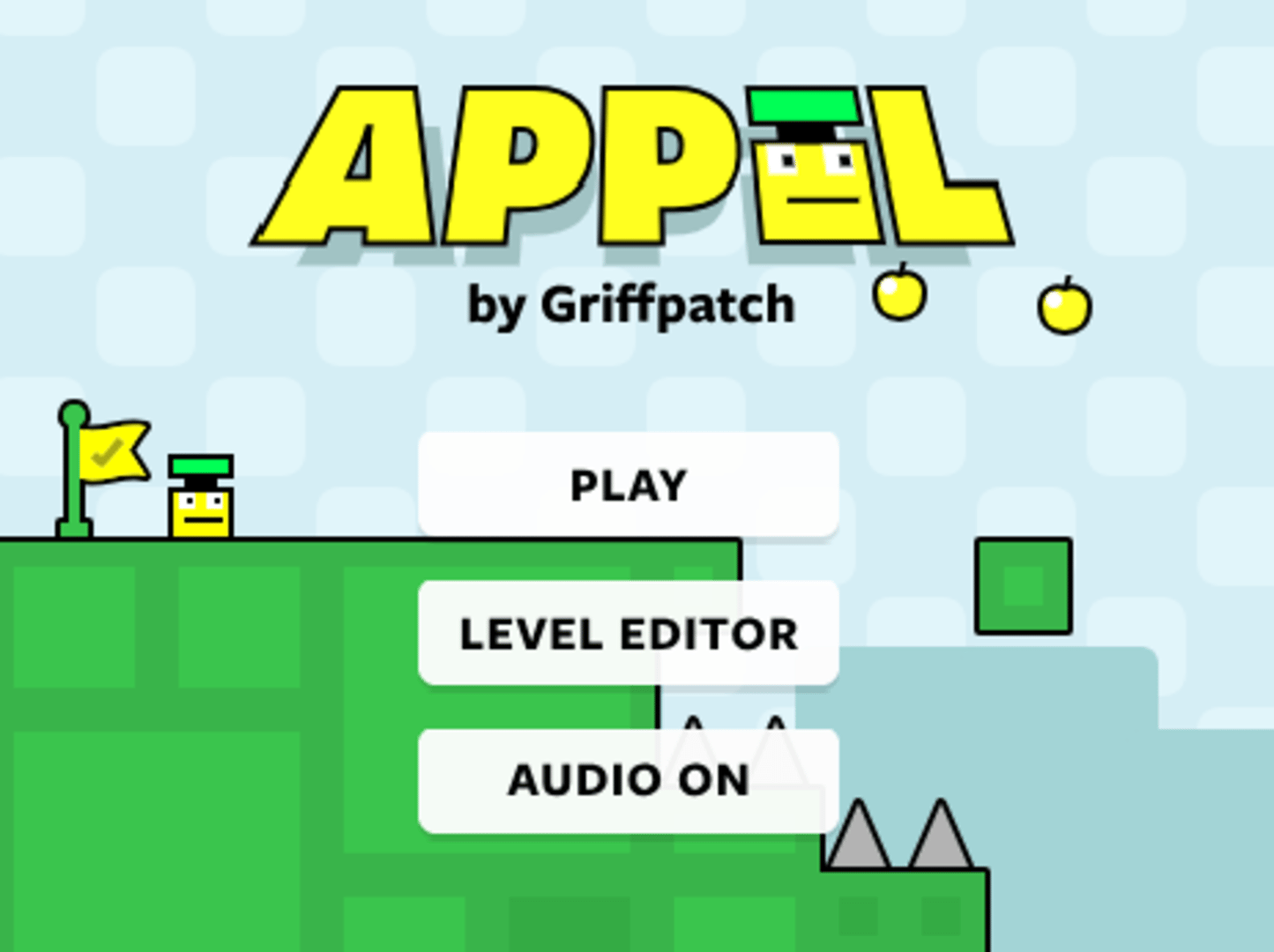 Appel is a platformer game created by Griffpatch. In this game, you play as Appel, and adventure through the world of Appelmoshapje. Navigate through each level, collecting as many yellow apples as you can, then face Micro Manager and restore peace to the world. The game has 9 levels, a level editor, and much more.