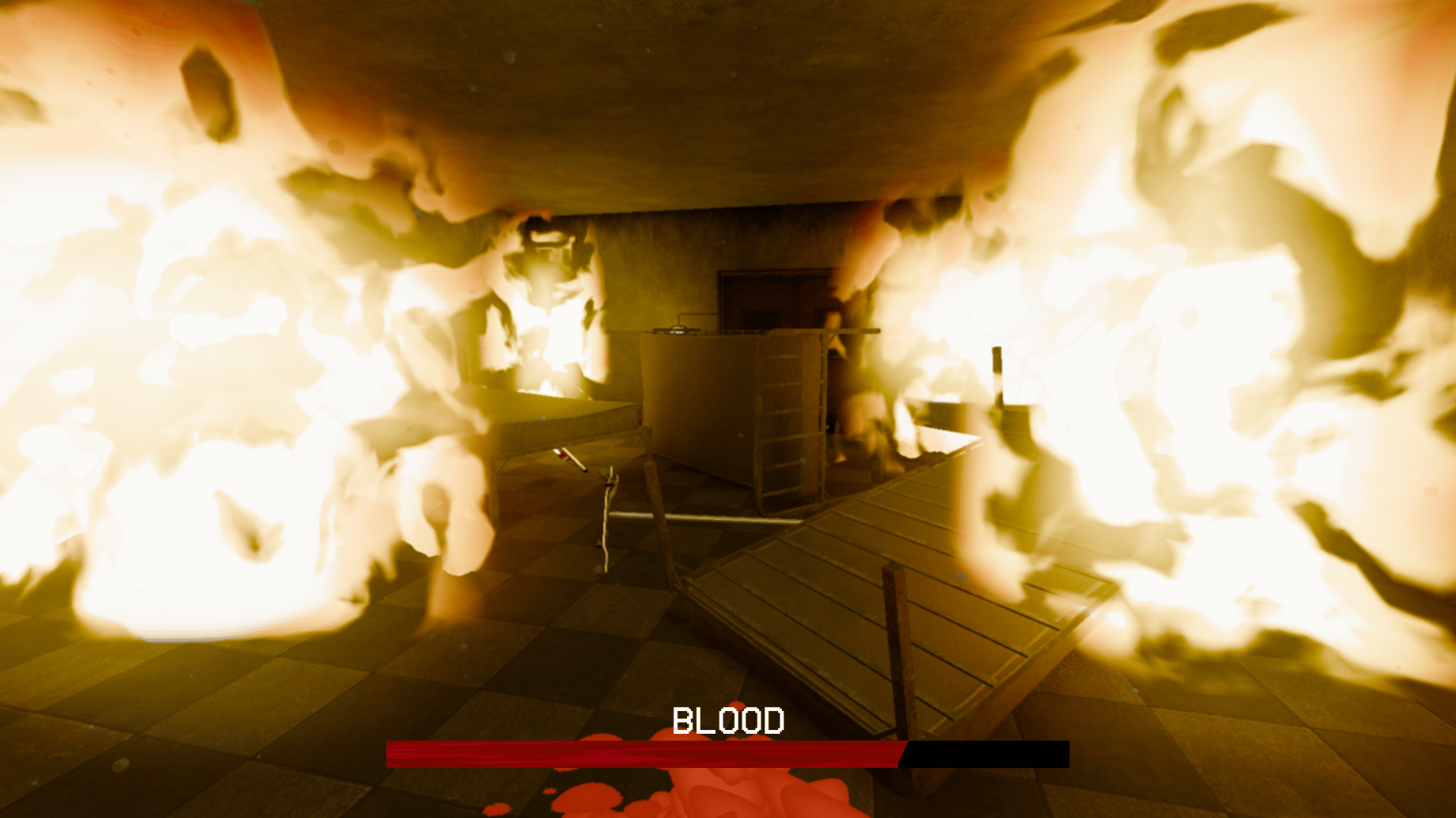 After the incident both of your legs have been rendered useless. Luckily, you should be able to recover in no time, right doc? doc? Where are you going!? Oh geez why is there smoke- uh- oh no- A FIRE! AHHH EVERYTHING IS ON FIRE ARGHHHHHHH!!! This game was originally made for the Toxic Terror Gamejam.