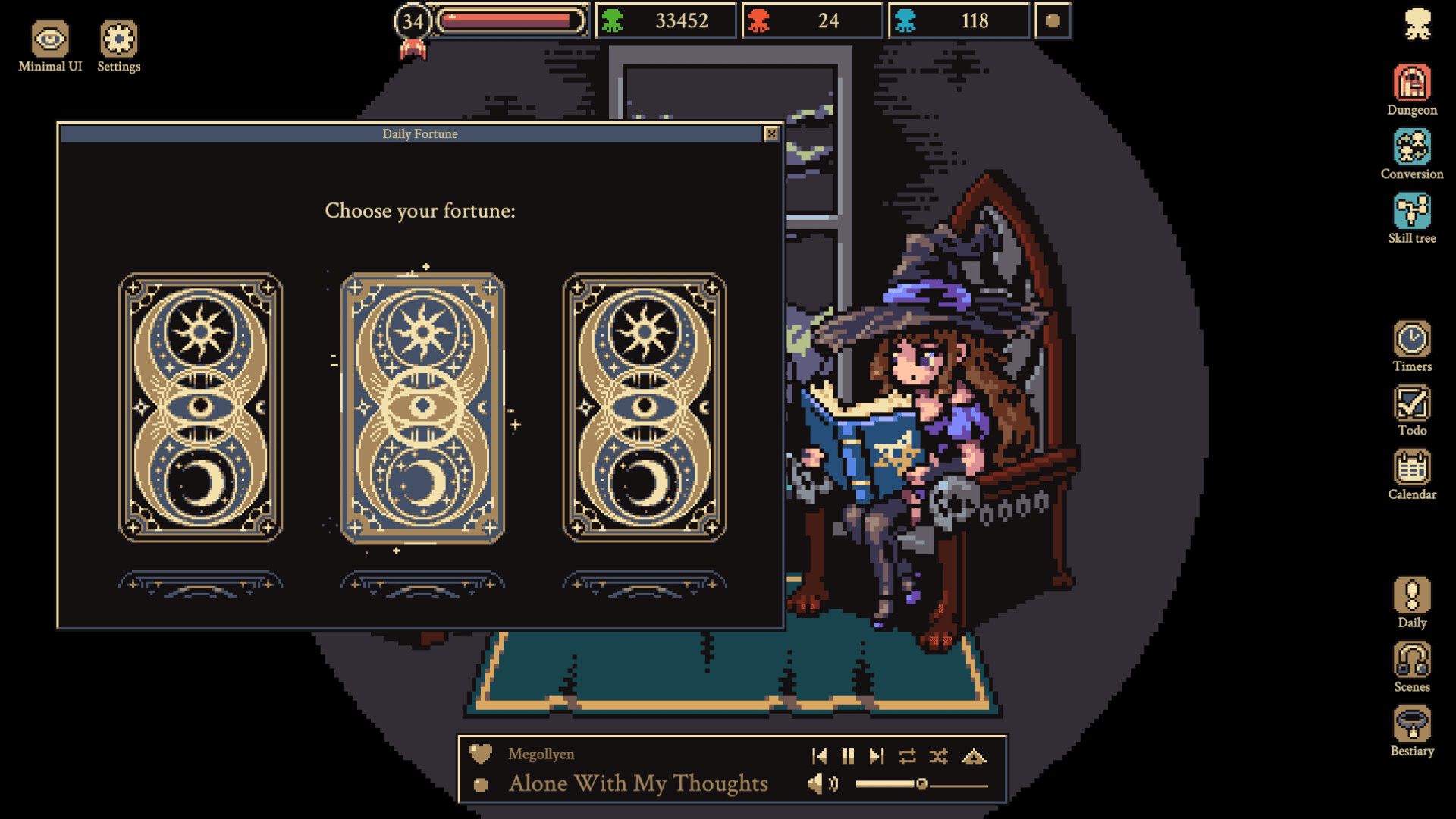 Welcome to Occult Office, a cozy and mysterious productivity game! Decorate your workspace, conquer to-do lists, and explore dungeons on your coffee breaks. Master daily rituals, collect strange pets, and climb the corporate ladder - all in cozy pixel art with a Lovecraftian twist.