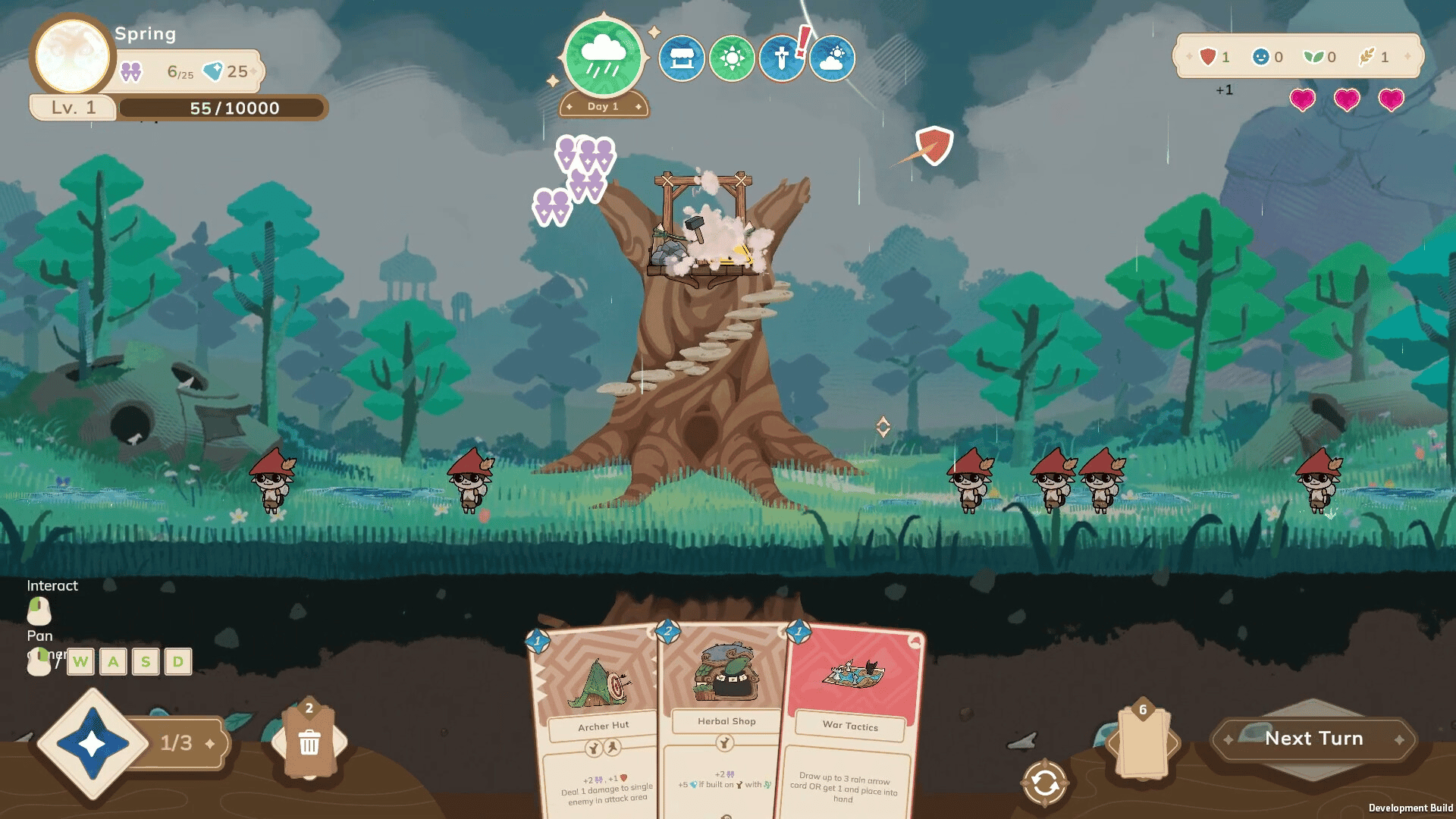 Build a gnome kingdom among the branches of a giant tree in this relaxing mix of city-building and roguelike deckbuilding. Grow the tree, build structures, earn cards and blessings, and survive monsters and disasters. Each run spans seasons and unfolds differently. Can your tree kingdom thrive?