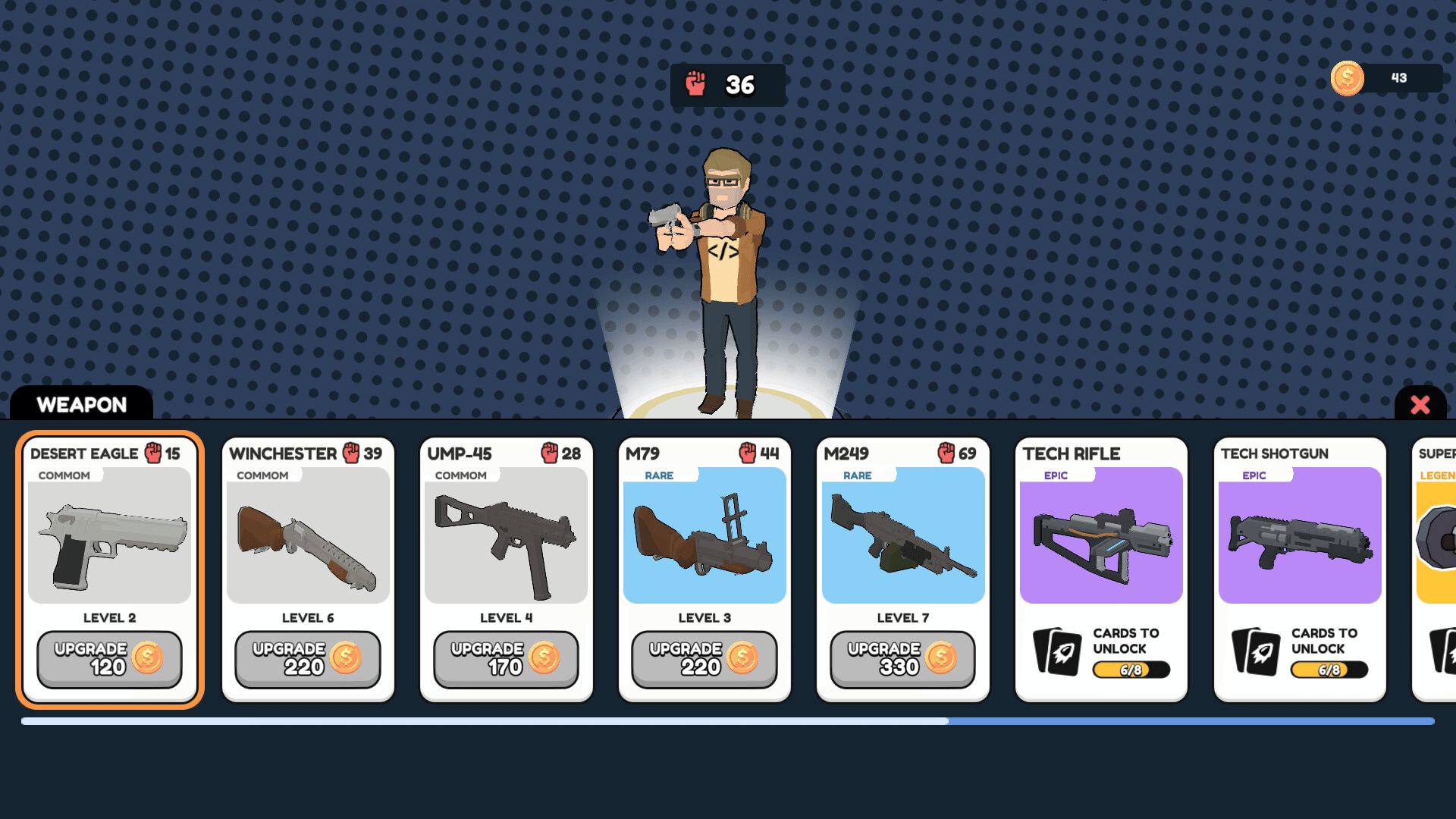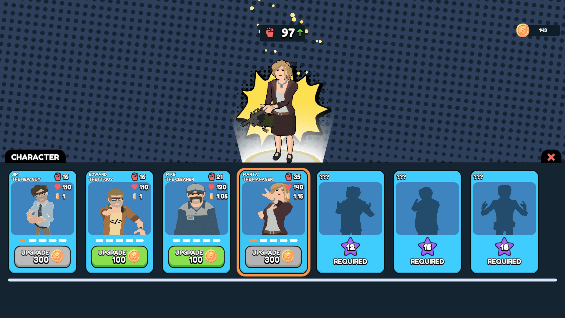 Office Hero is a top-down action, shooting, and roguelite game. Climb the floors of a building overrun by machines, choose your weapons, unlock new characters, and face challenging enemies and bosses in fast-paced, intense stages.