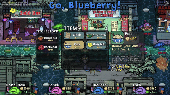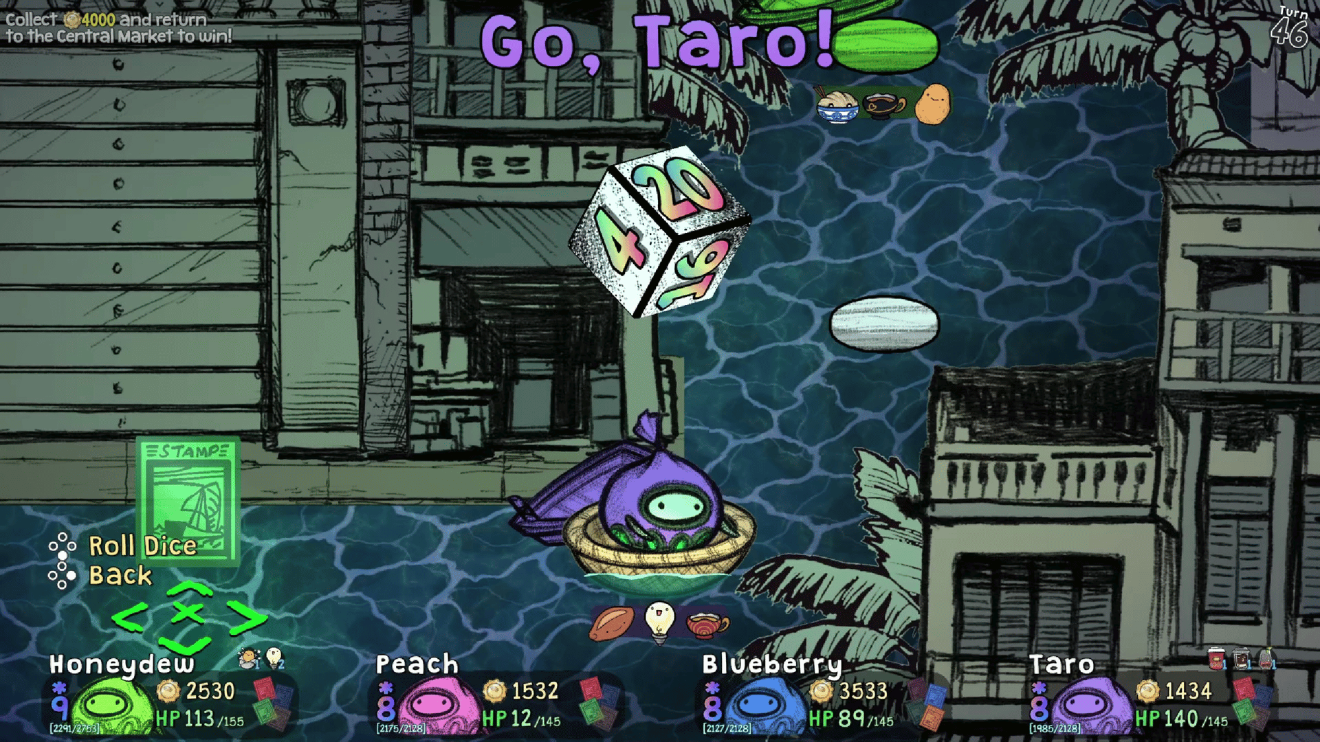 A Monopoly-like RPG where you fight inanimate objects and sell its remains to unsuspecting shoppers – on boats. Inspired by Vietnam's floating markets, players move around the board via dice to gather collectable stamps, fight enemies for goods, and build storefronts to sell gained goods.