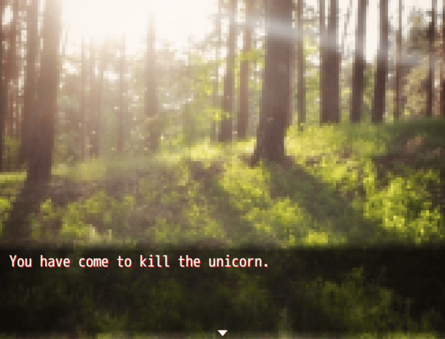 You came to the forest of Yomori to slay a mysterious unicorn. Face the consequences.