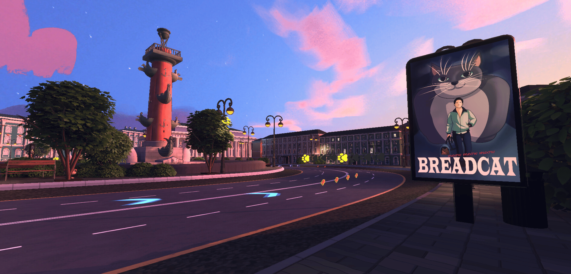 Now you are a catloaf and you are racing along the track. Imagine a kart racing game where you control not cars, but catloafs. Compete with friends, outrun each other, use your skills and environment to win!