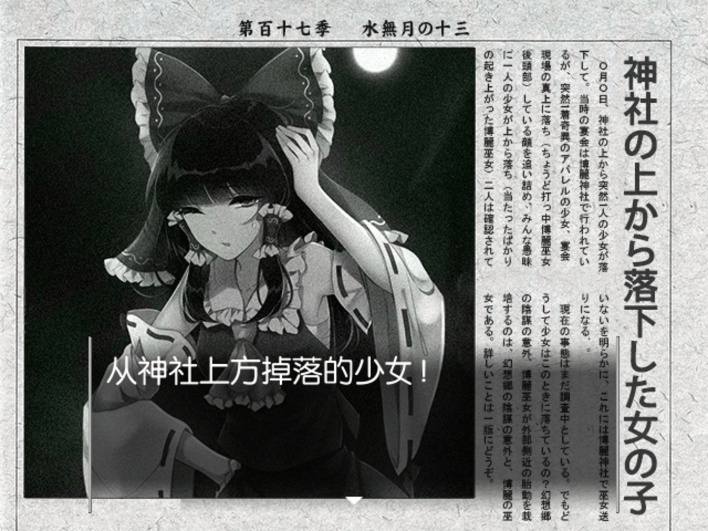 Human Spirit Agency ~ A Salvageable Tragedy is a free Chinese fangame developed in RPGMaker XP by Bawu Team, heavily inspired by the Ace Attorney Investigations games. Players take on the role of Youmu Konpaku as she solves a series of grisly murders throughout Gensokyo and unwraps the tragedy connecting it all.