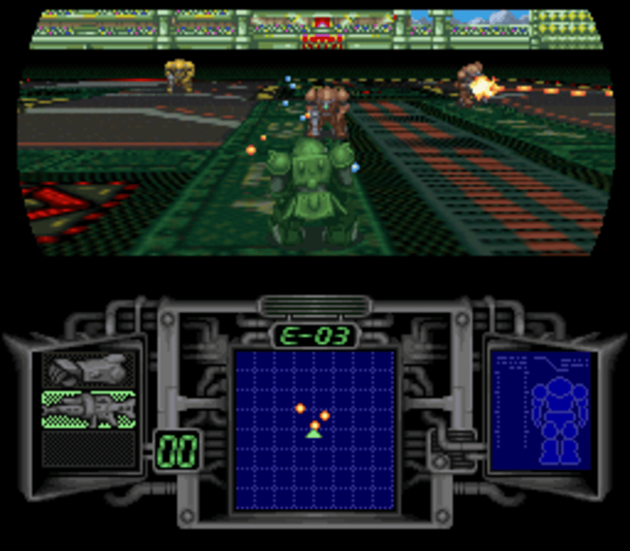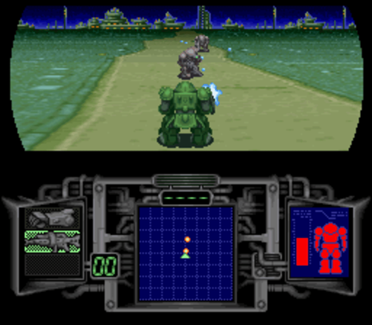 The Japanese animation "Armored Trooper Votoms", released in 1983, was the brainchild of N.Shioyama (Ronin Warriors) and R. Takahashi (Gasaraki). Together they created one of the most beloved (in Japan) shows in the history of Japanese Animation. The series was later released (1996) in the US by Central Park Media. The series spanned 19 videocassettes, and quickly developed a small, but devoted fan following. Its 80's style animation turned off a lot of would-be fans, but those willing to endure the animation were rewarded with one of the best storylines (and also some really cool mecha designs) available in the genre. The series was so popular in Japan that games, toys, and models are to this day being made. Armored Trooper Votoms: The Battling Road is, the first Votoms game created, and is an incredible game. Utilizing the DSP chip (A chip implemented into no more than 15 Super Nintendo/Famicom cartridges) to create a Pseudo-3D environment, this game looks absolutely wonderful for its time. Since its release there has been 5 Votoms Playstation games released