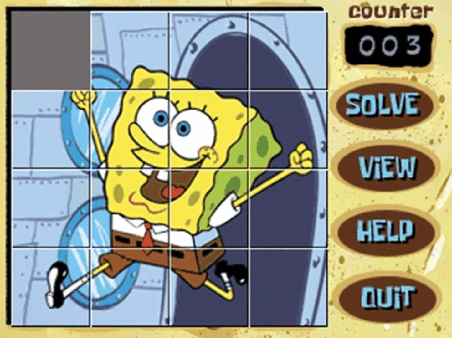 A sliding puzzle game released in 1999 featuring characters and imagery from SpongeBob SquarePants, where players rearrange scrambled tiles to complete images.