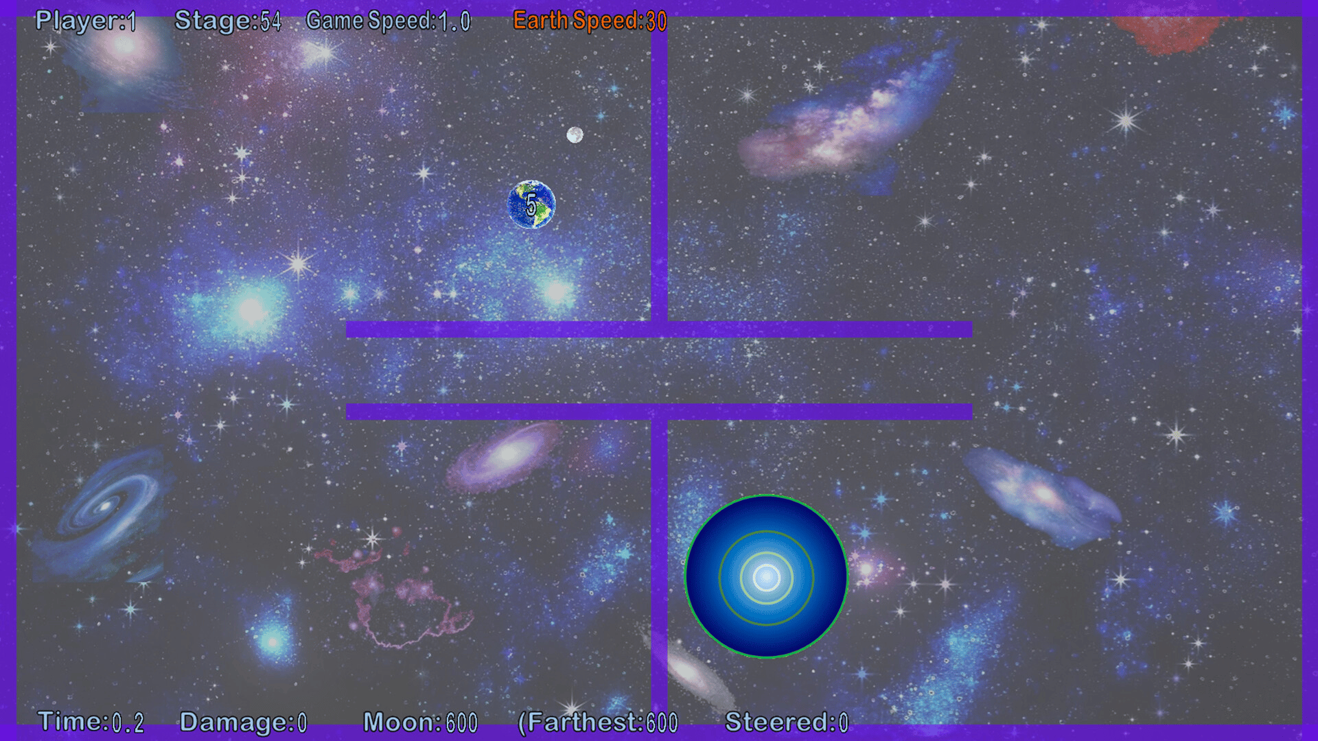 This is a new action game where you steer the earth. Steer the Earth, when both the Earth and the Moon are in the goal zone, the stage is cleared. Stars are constantly pulling on each other with universal gravitation. You can experience a simulated universal gravitation.