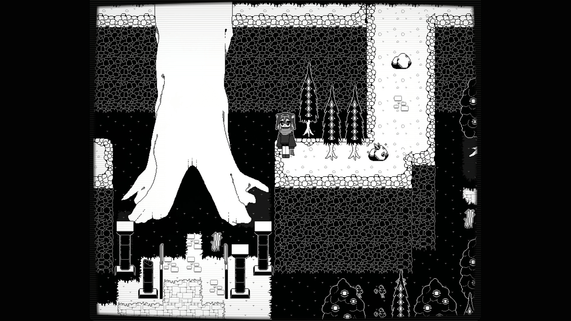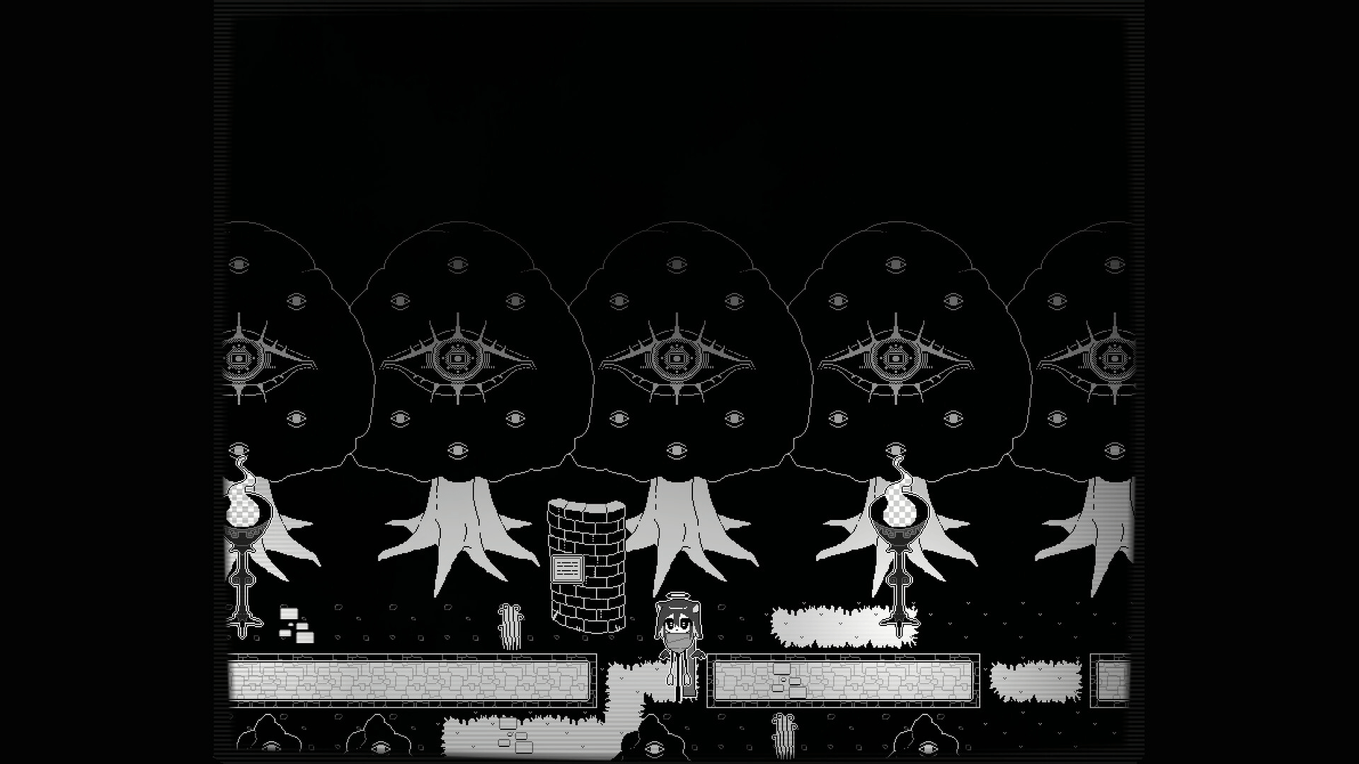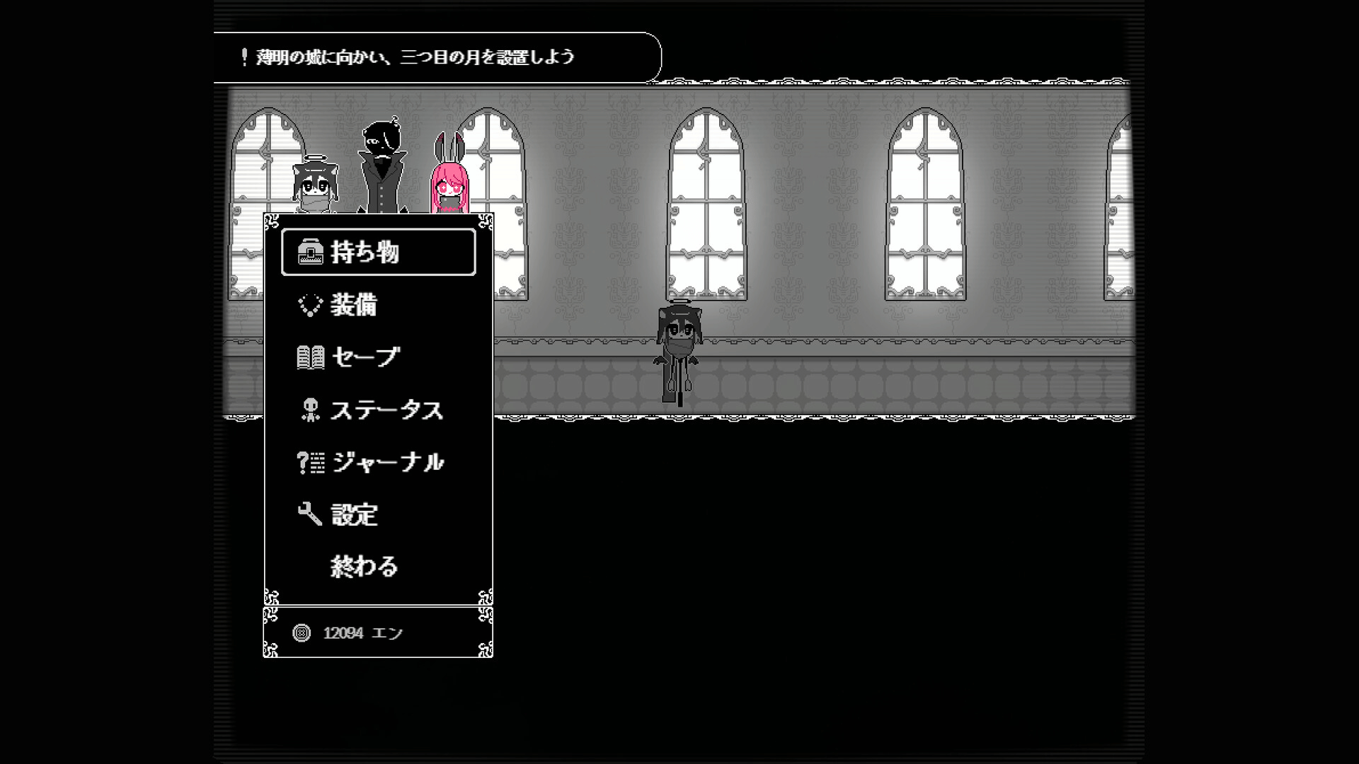 "Moonchrome." is a monochrome JRPG in which you travel to various locations to raise the moon and save a colorless world.