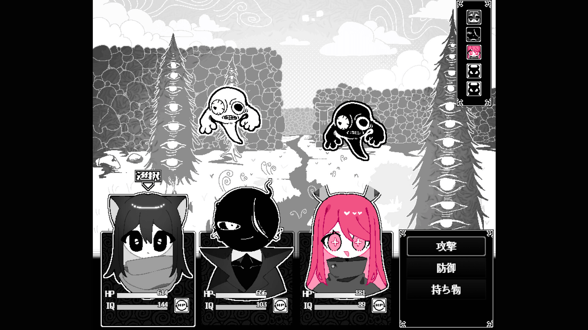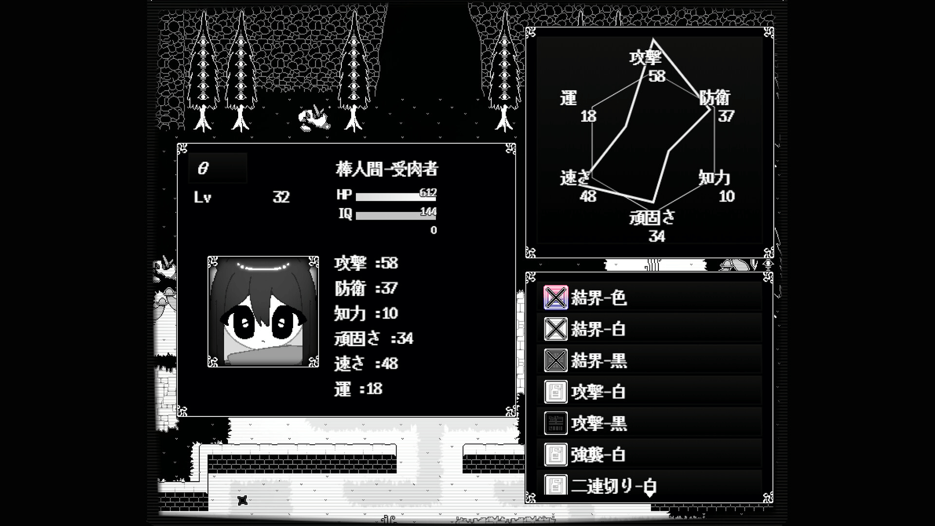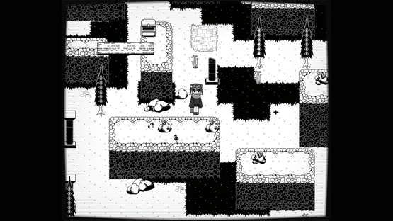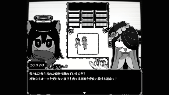 "Moonchrome." is a monochrome JRPG in which you travel to various locations to raise the moon and save a colorless world.