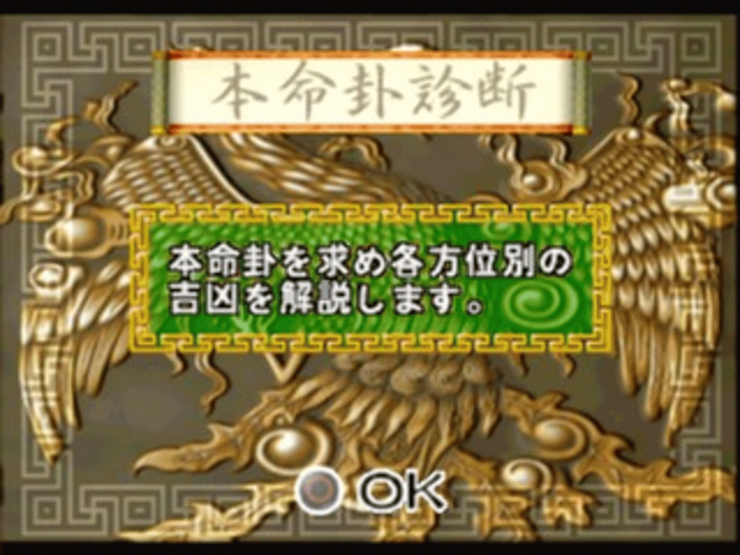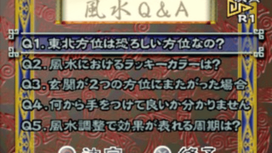 Pao Leeming Kanshuu - Fuusui Nyuumon is a simulation video game that is an introduction to Feng Shui, the game explains what is Feng Shui, the player will have diagnosis by each room (entrance, kitchen, bathroom, bedroom, etc.), by floor, items (like tv, furniture, etc.), also is each item is in harmony with the environment. There is also favorite diagnosis in which the game will provide a diagnosis in the directions of the player's essenstial points. Also the Feng Shui by purpose in which it will provide the Feng Shui the is the right one about love, money, health, child care, work, etc.