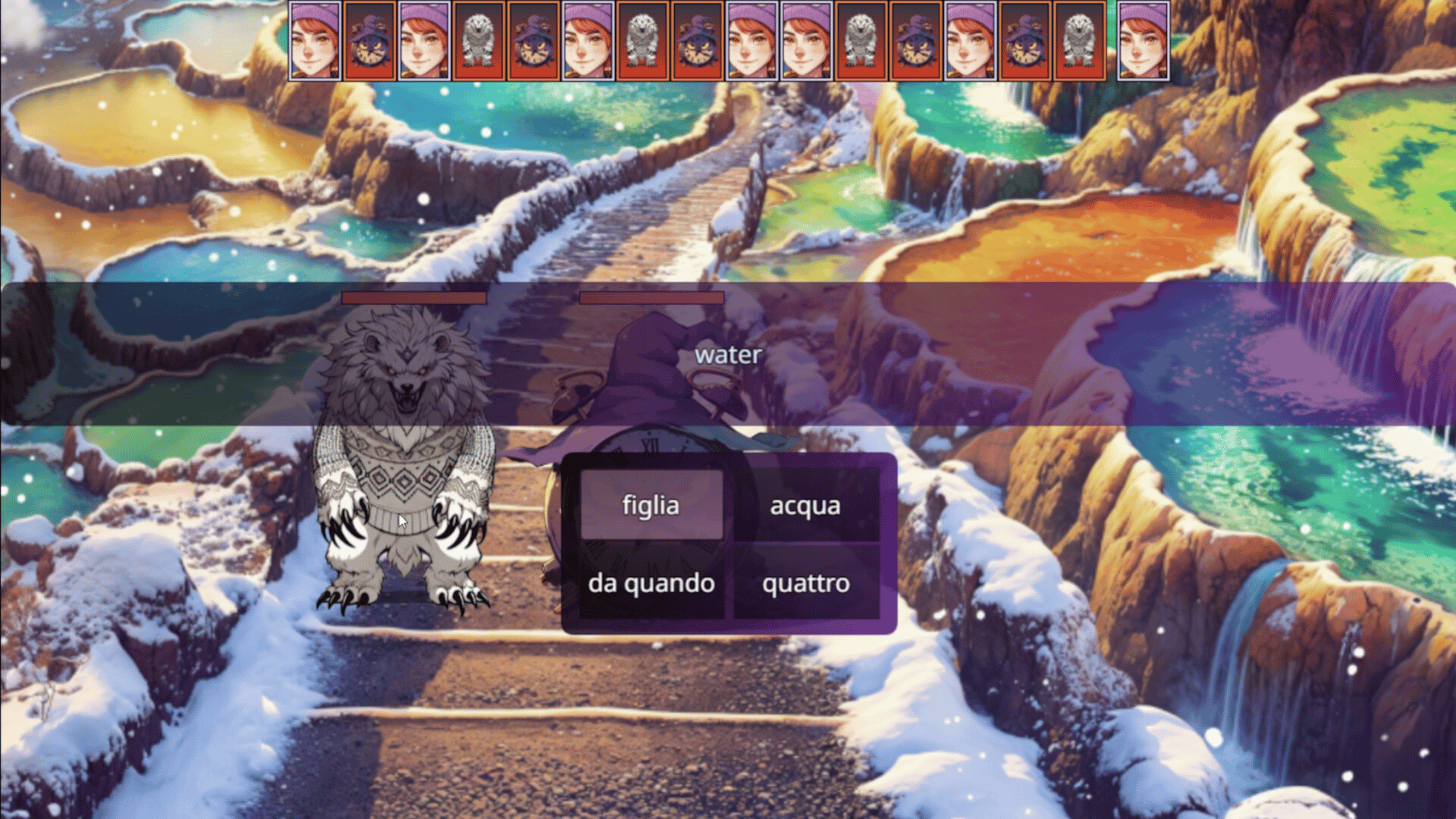 Learn Italian through immersive quests, interactive dialogues, and spaced repetition combats. Help a young hero lift a magical curse by mastering Italian. Start your journey to Italian fluency today!
