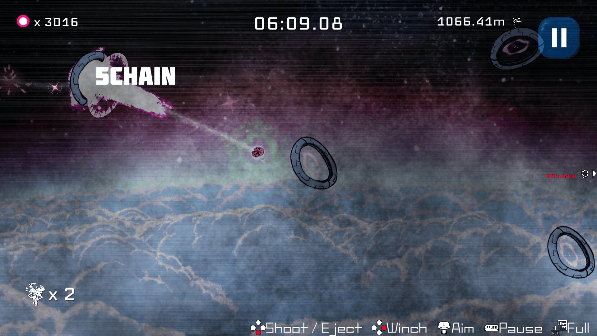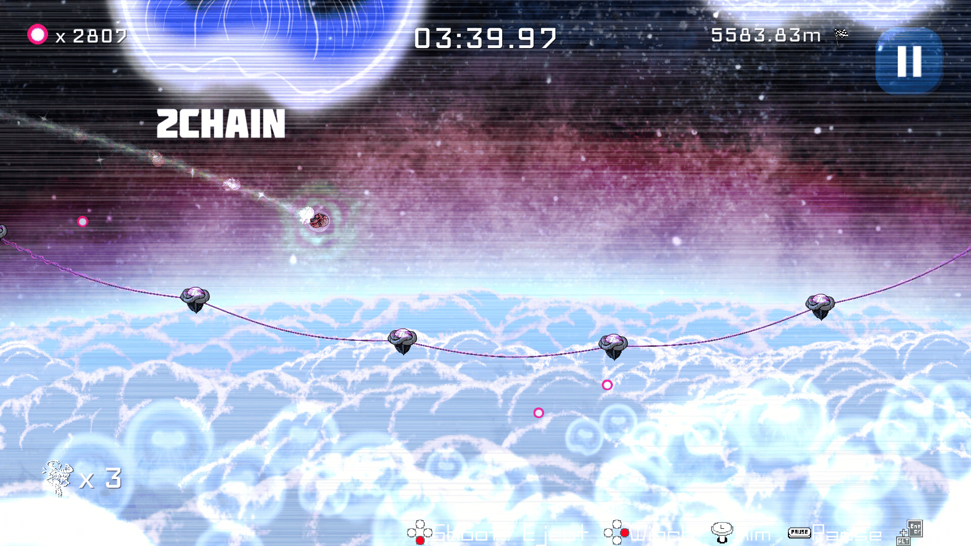 High-speed action game where you cross a wire floating 10km above the ground using only one anchor to reach the goal.