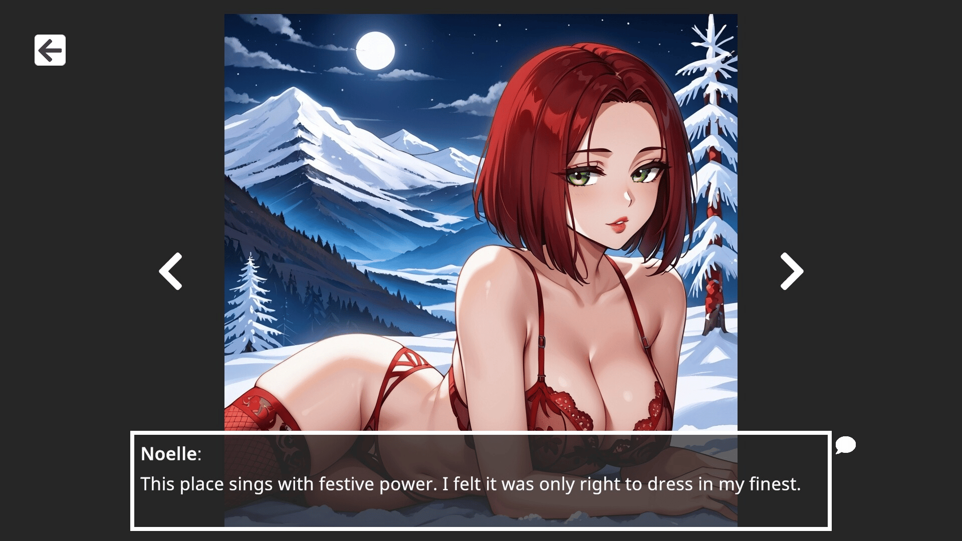 Embark on a titillating journey through mystical winter realms with Noelle, your alluring festive guide. This adults-only "spot the differences" game challenges your keen eye, rewarding your success with seductive reveals steeped in the magic of the season.
