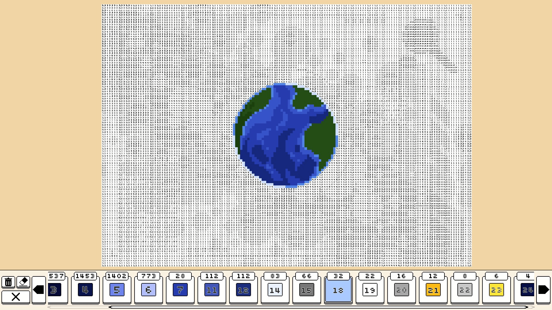 This Zoom Out book unlocks 20 additional levels for Coloring Pixels. Each image is zoomed out from the previous image, revealing more and more of the scene! Grab your magnifying glasses and look really close at the fine details!