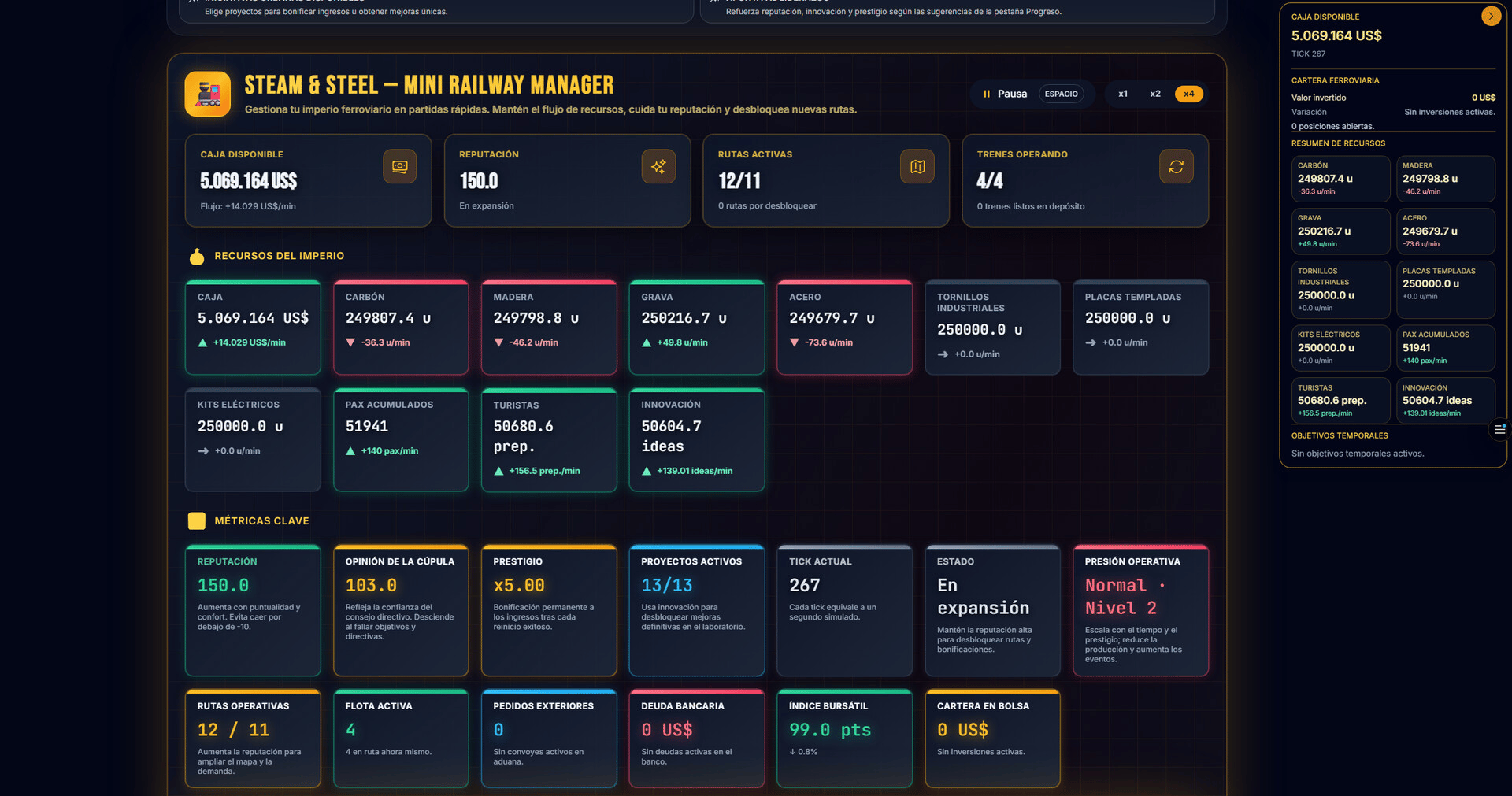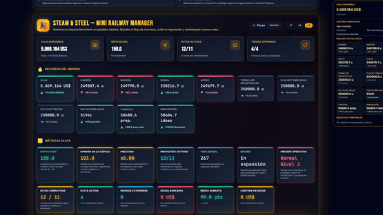 Steam & Steel — Railway Tycoon puts you at the helm of a dieselpunk railway empire. Manage stations, locomotives, and resources, then dive into real-time simulation with dynamic maps, evolving fleets, and strategic decisions that shape your network’s rise.