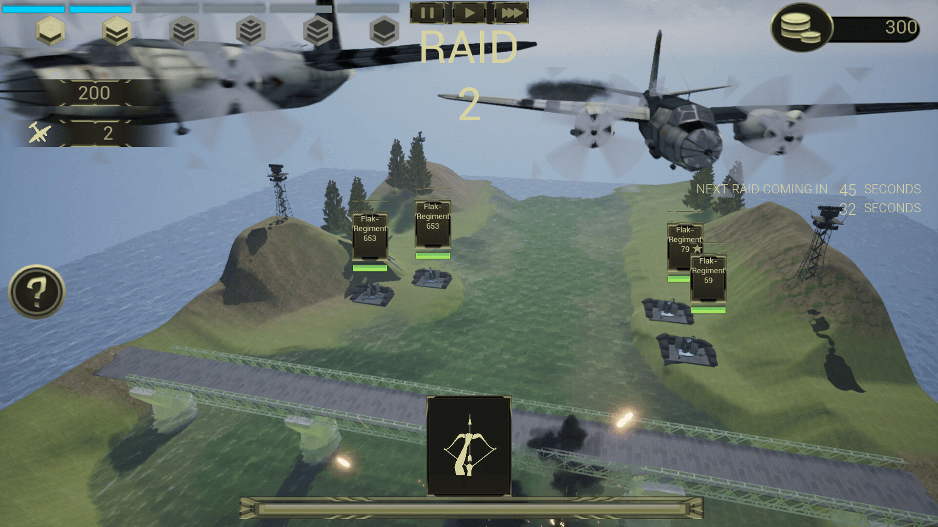 Each day the US air force send wave after wave of bomber to crush our War machine. You are one anti-aircraft Brigade commander equiped with flakwierling 38 and the awesome Flak 88mm gun. Install them wisely and shoot all the bombers! Protect our factories and the fatherland!
