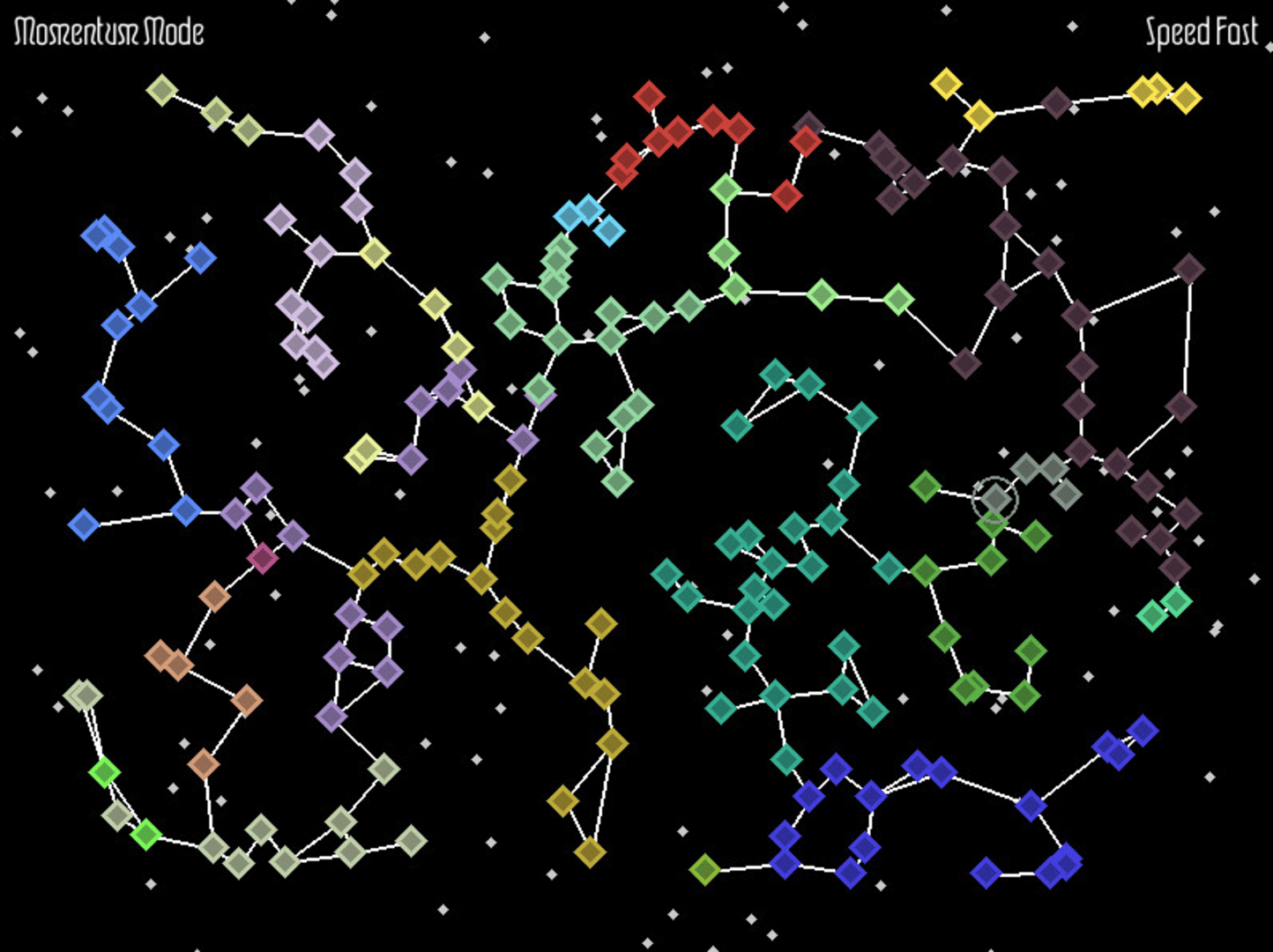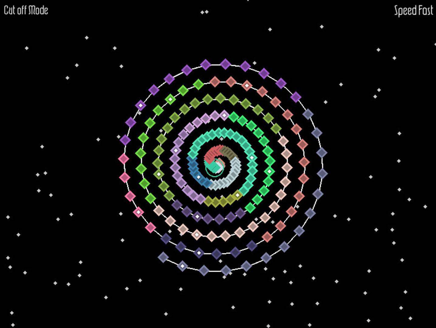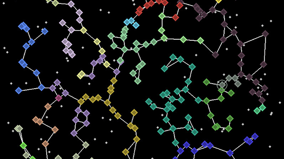 Watch as stars battle for control of a simple simulated galaxy. Each star belongs to a faction, indicated by its color, and combat happens automatically between neighboring stars. Your role is to observe the dynamic battlefield as stars change ownership.