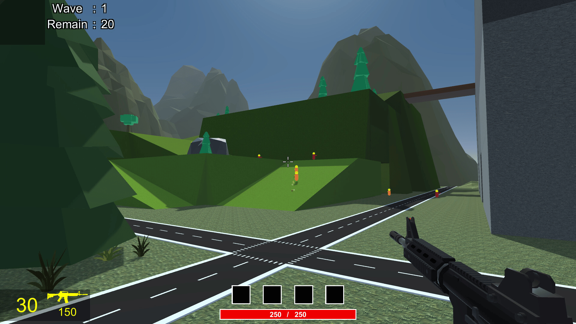 PolyGunner is a simple single player FPS game. You have 2 weapons, but a limited amount of ammo. Battle with incoming enemies, collect ammo from enemies, prepare for the next battle to come.