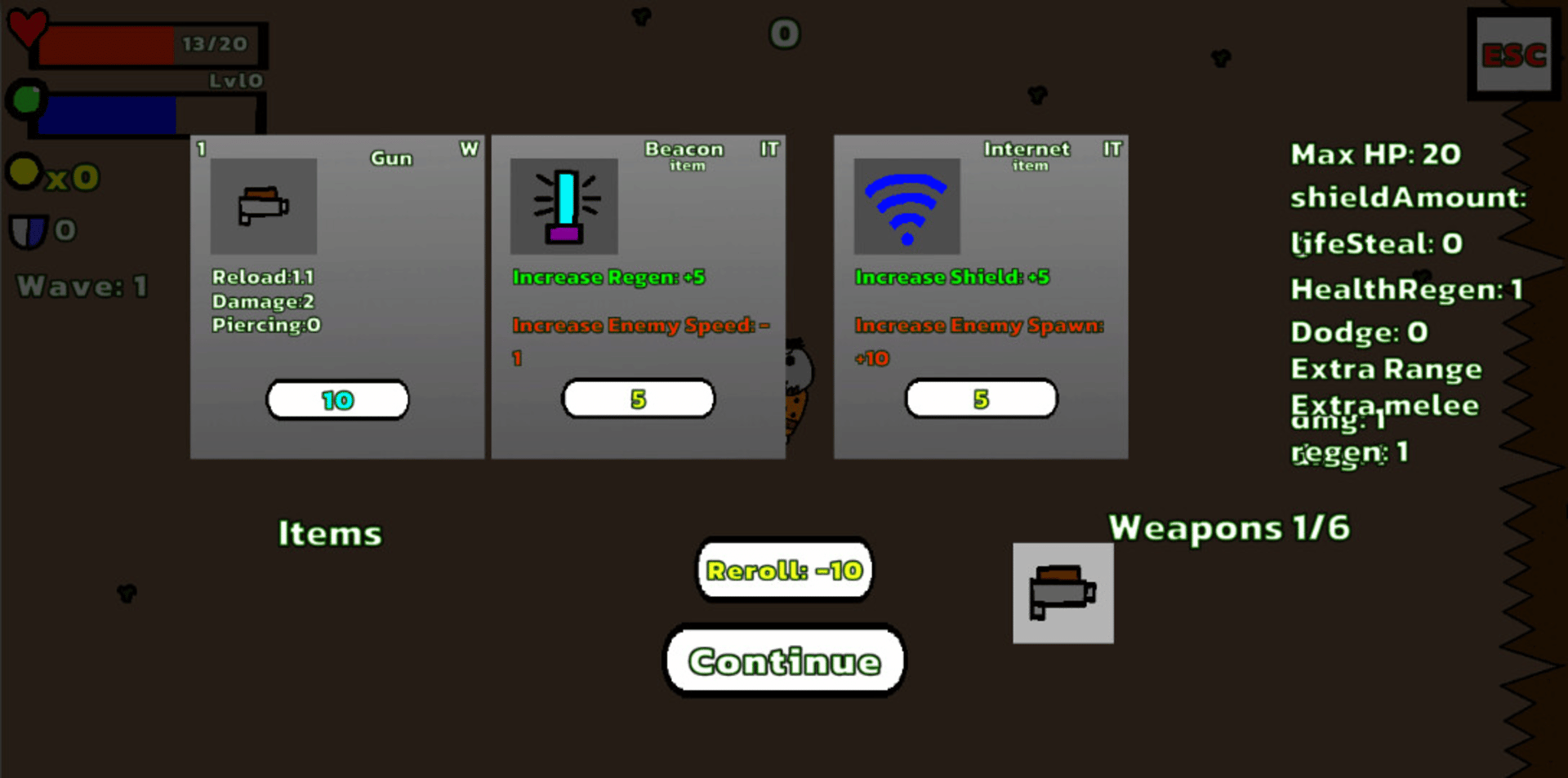 A top-down RogueLike shooter game. Attack cute cartoonish enemies with 6 different weapons! Many tough choices await!! Play now :)