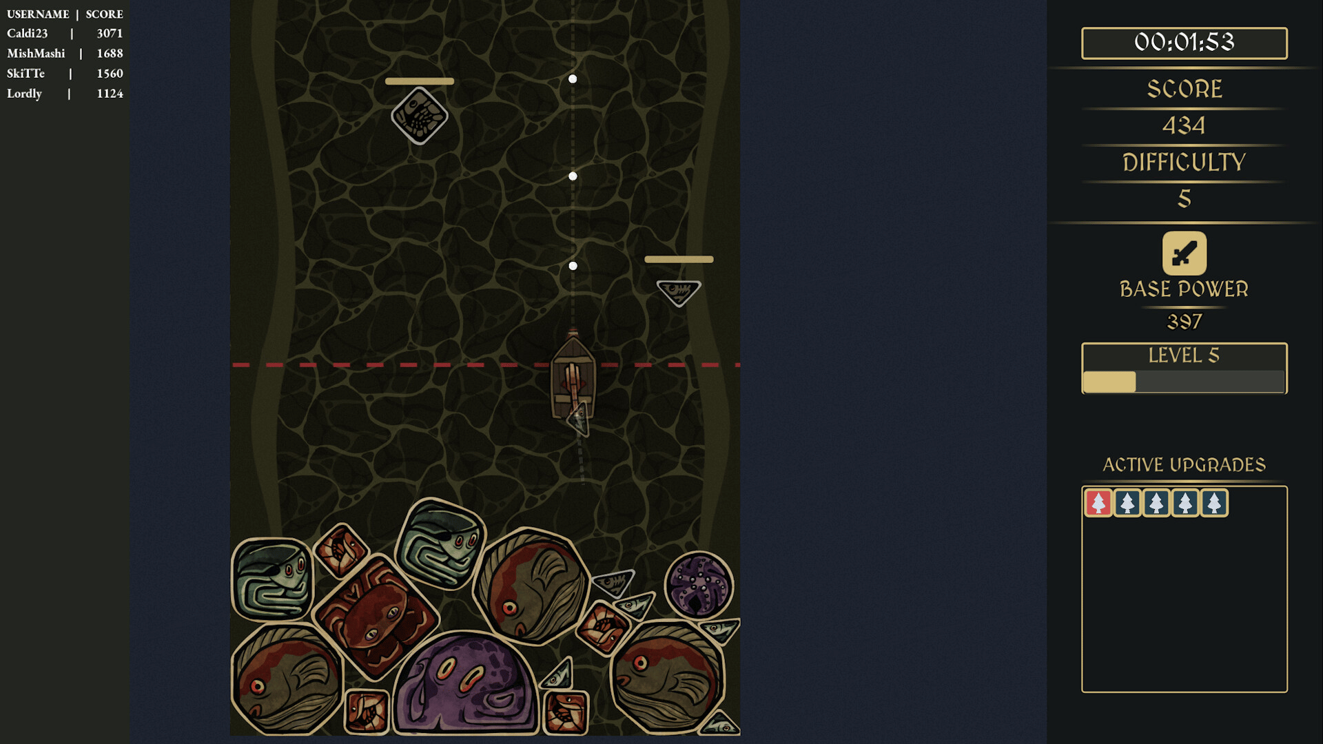 Merge fish to blast horrors! Abyssal Merge is a Suika-shooter roguelike where every merge scales your power. Shoot fish down to grow, and auto-fire up to survive eldritch waves. Featuring boss fights, unlockable ships, and a unique coin-shooting shop. Hold the line!