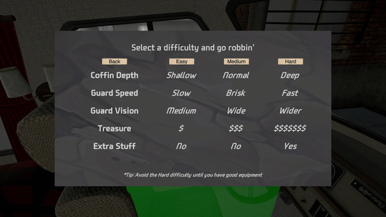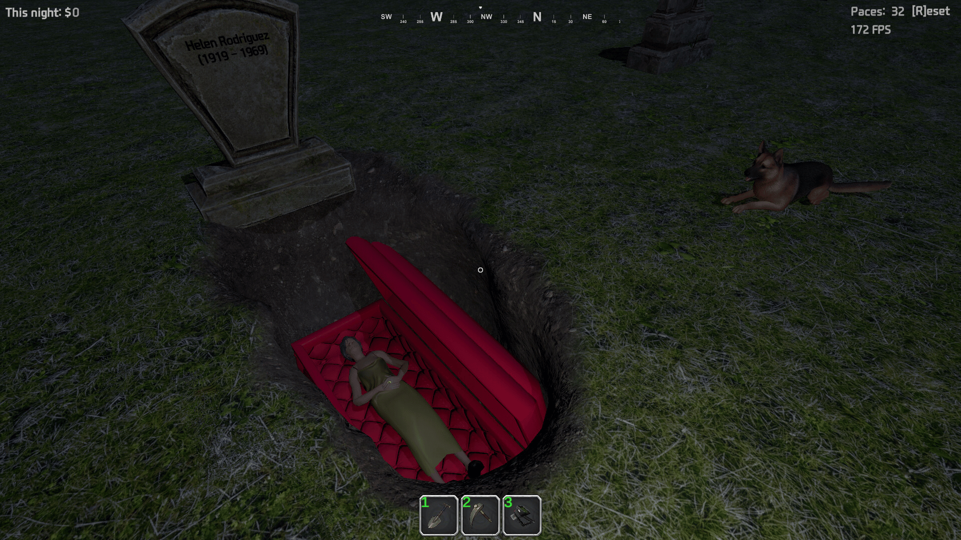 Graverobber is an open-ended first-person stealth game about digging graves for profit while avoiding patrolling guards, traps, and whatever might be buried beneath the soil.