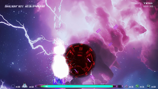 Eschaton is a vivid, fast-paced top-down arcade sci-fi space shooter with weapon upgrades, intense boss fights, dynamic SFX, and an original metal-meets-synth soundtrack. Chase high scores, accuracy ranks, and speedrun times while killing aliens in this chapter of a longer legendary saga.
