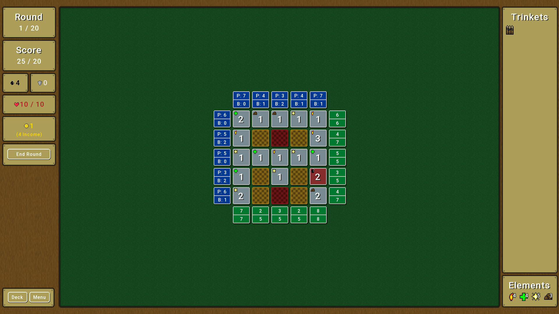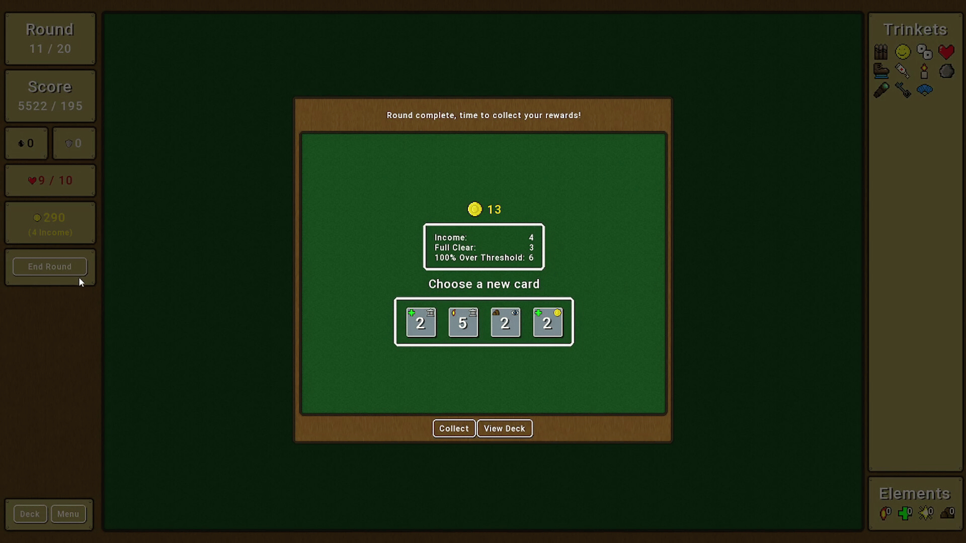 RogueFlip is a perfect marriage of a logic puzzle with a roguelike deckbuilder! Deduce the right cards to flip to score points, dodging damaging bombs along the way, then power up your run with crazy run-bending trinkets and manipulate your cards with stickers and upgrades.