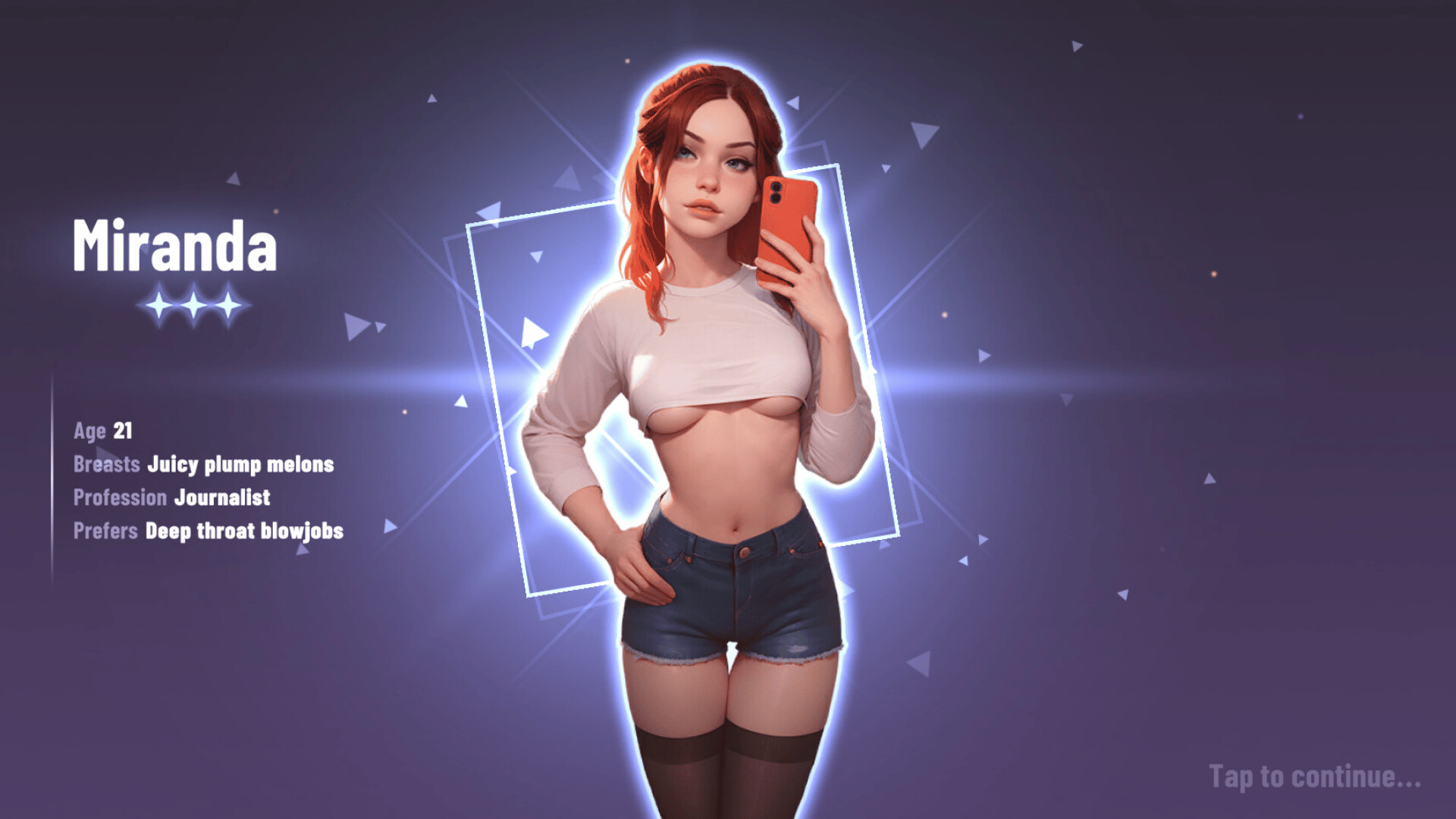 An erotic Merge-5 game featuring collectible girl cards, flirty chat, spicy photos, romantic quests, and animated hot dates. Enjoy vibrant visuals, a captivating story, light humor, and relaxing gameplay. Become the producer of the pleasure industry!