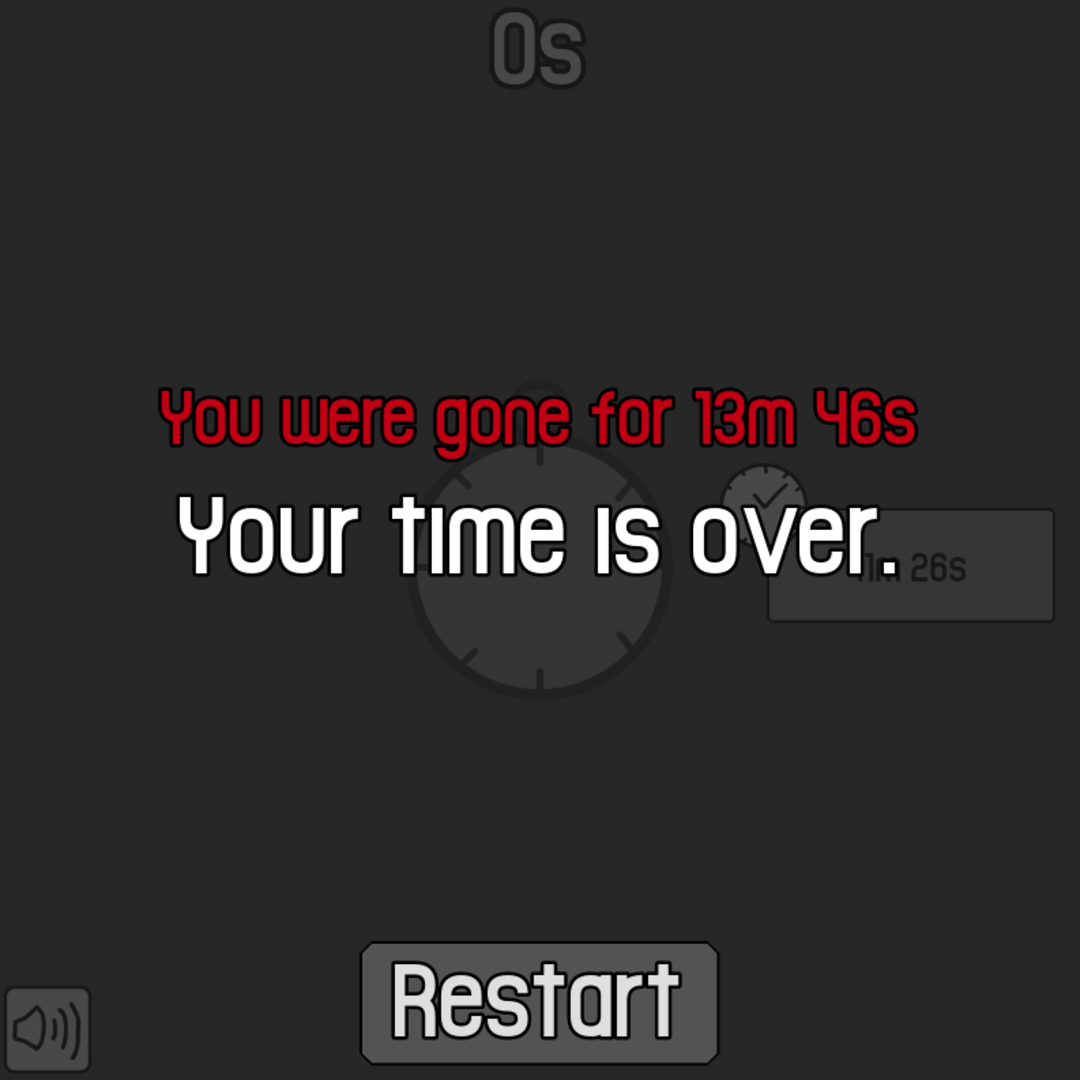 The clock is broken, can you replace it? From now on, you need to check that the time doesn't run out. Click on the clock to gain time. Upgrade your "time per click" by pressing the upgrade button on the right. Sometimes, a boss will spawn. Kill him to get extra time. Note: This game was a jam submission to the German-language 'MrLuchs Sommer Wettbewerb 2024' (Summer Games Competition 2024) on itch store in 2024. It ran between July 2nd 2024 at 3:22 AM to August 5th 2024 at 7:58 AM.
