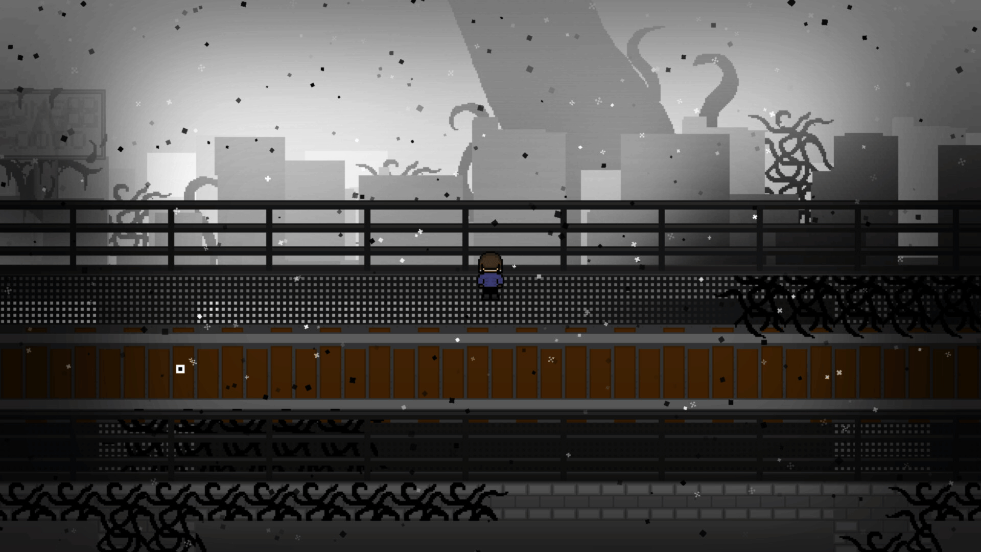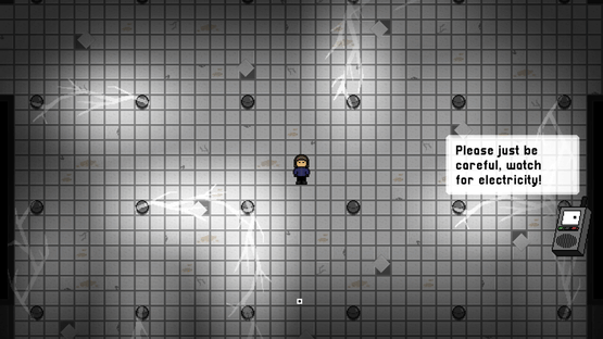 A top-down, action and puzzle game with thrilling boss fights, played as a linear story line. Combat imitates that of a slow top-down shooter, where the player throws various tools as a weapon. Pixel art graphics with a dark, electronic soundtrack.
