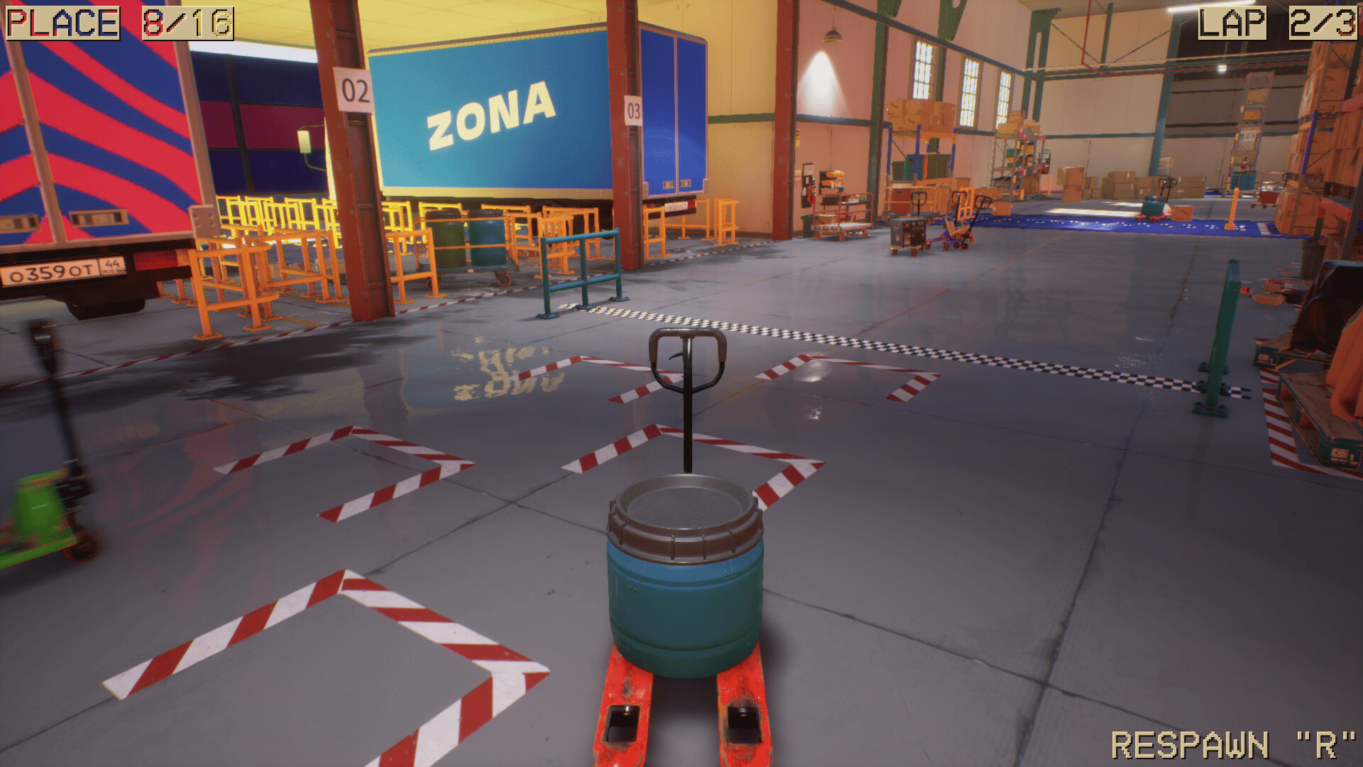 Welcome to the "Pallet Jack Racing" — crazy races through endless labyrinths of warehouses! Get comfortable on your trusty pallet truck and hit the gas hard!