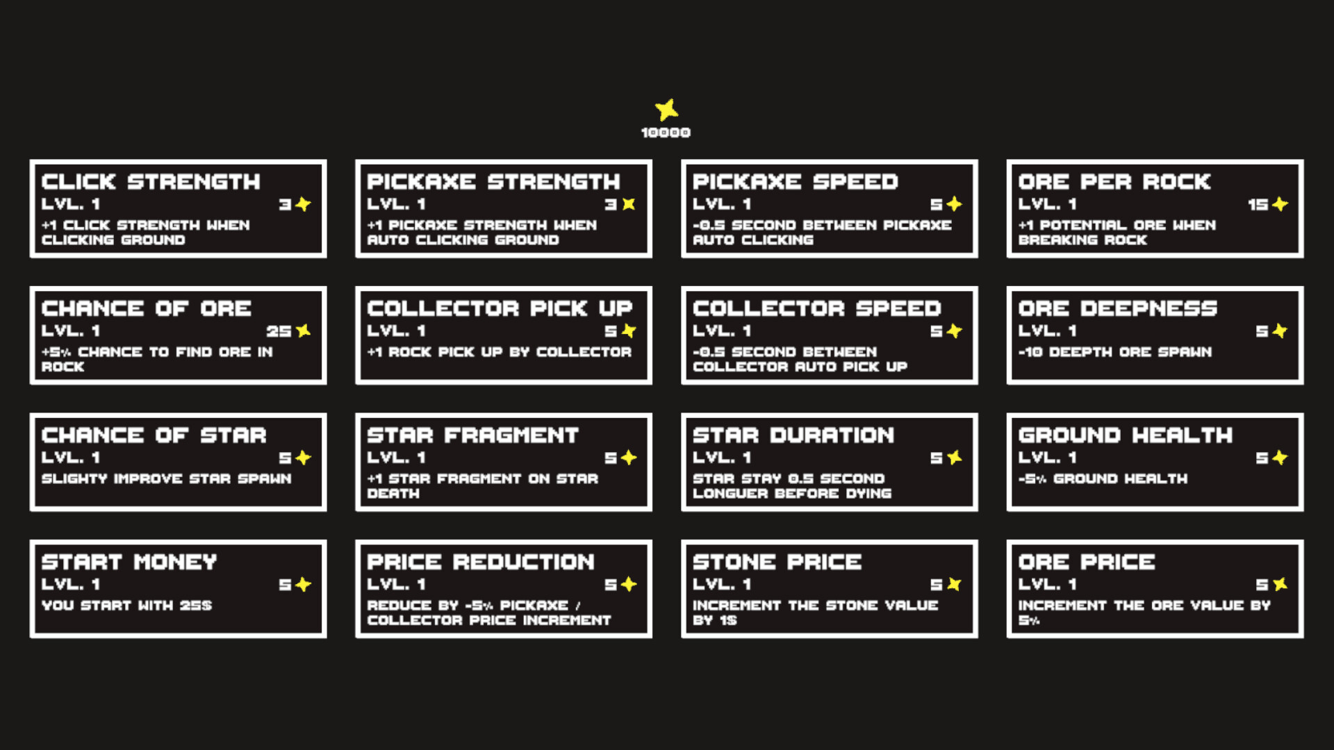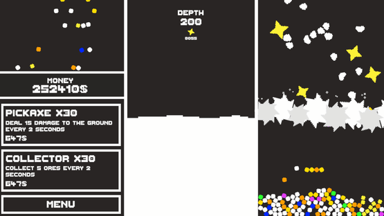 Miner Clicker is a short idle indie game where you have to click to mine. Click to gather resources, reach new depths, and buy upgrades to dig faster and deeper! Who knows what you might find at the bottom of the mine!