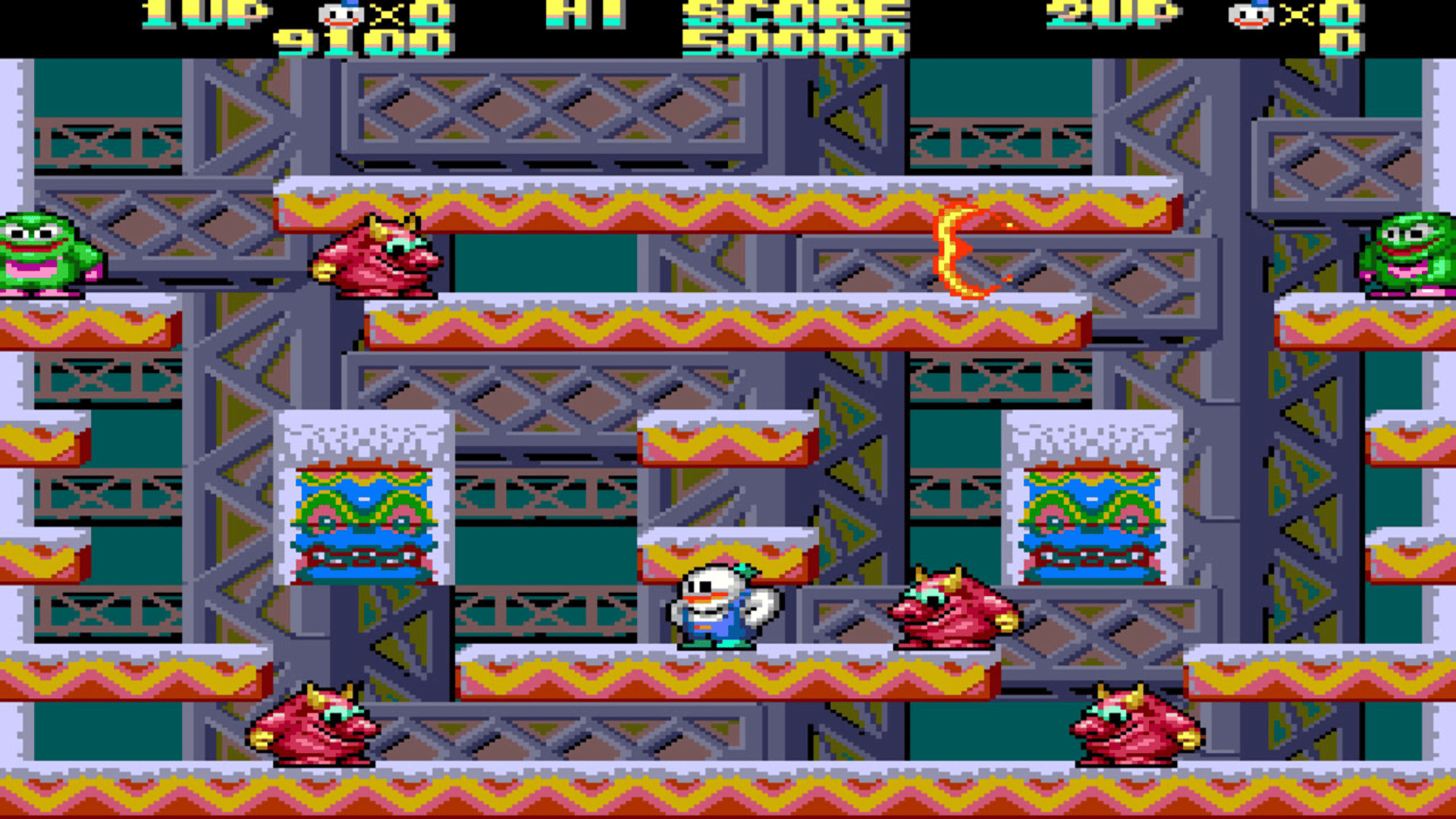 It’s always more fun to throw a snowball than to be hit by one! Toaplan‘s hit Snow Bros. is back! This arcade-style, fixed-screen platformer follows brothers Nick and Tom through epic levels in the Kingdom of Hottoda to save two trapped princesses, each possessing the magic of snow… and the only hope for the realm. As evil King Atchich seeks to take over the world, the snowmen we love must set out to storm the enemy’s fortress and rescue their princesses! Shoot snow at your enemies, picking up items to enhance your fighting, from speed enhancements to shot powerups, becoming giant, and more. Each level features not only enemies but a boss fight, with unique characters to size up and snowball! Whether you have loved them since the 90s or are just discovering the snowy goodness now, Snow Bros. will show you exactly why it’s such a timeless game. Included Games: Snow Bros. Snow Bros.: Nick & Tom Snow Bros. Jr.