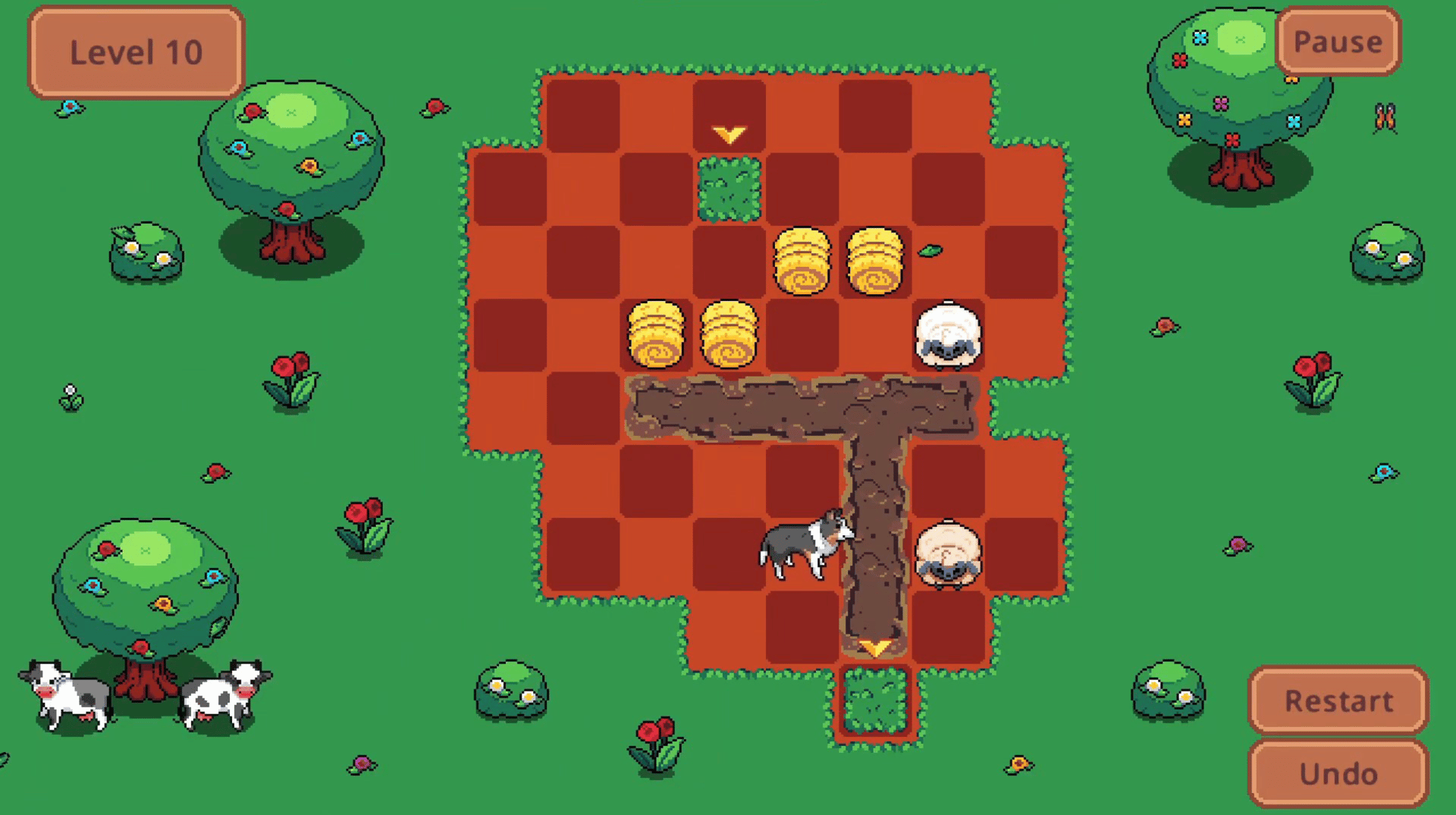 In Collie Call, you’re a super-smart pup on a mission: herd all the sheep back to the pasture! But it’s not as easy as it sounds — there’s slippery mud, spinning sheep, and even wacky teleporters. All wrapped up in a cute retro pixel-art style! You’ll explore three different farms: Spring teaches the basics (and introduces muddy mayhem). Summer brings spinning sheep and bigger levels. Winter adds teleporters and brain-twisting puzzles! With easy controls, instant undo, and quick restarts, you can try out all your ideas without any pressure. Collie Call is a light and fun puzzle game, perfect for anyone who loves thinking things through and having a laugh with a clever little dog. Ready to round up that flock?