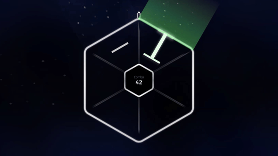 A hexagonal rhythm game played on a controller or touchscreen.