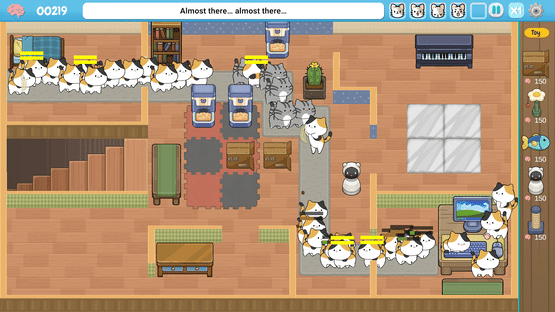 In Defend Against Cats, each level represents a desperate work day before a looming deadline. Waves of mischievous cats sneak in, scratch your monitor, knock your mouse around, and sprawl across your keyboard, steadily destroying your productivity. To stop them, you place food bowls, feeders, and toy-based defenses around your room. Hungry cats can be fed and sent away, while satisfied cats must be distracted with toys before they start tearing your setup apart. Different cats behave differently, with faster, greedier, and larger cats appearing as the invasion escalates day by day.