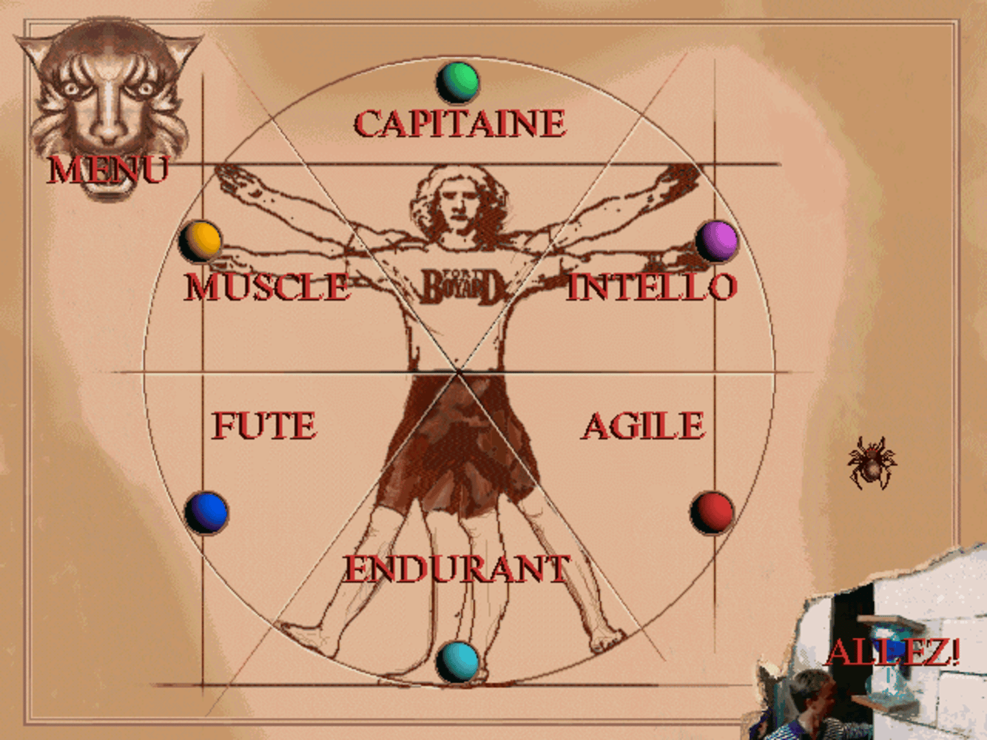 Fort Boyard: The Challenge is an adventure, action/reflex, puzzle video game for MS-DOS, created and published by Microïds in 1995. This game will transport you into the heart of a foreboding island fortress and one of the world's most celebrated TV game shows. 1 to 6 players per team meet the challenge of the Fortress and its inhabitants. Each puzzle is prefaced by a required skill, allowing a team of players to select the most skilled from the ranks. These skills are Clever, Tough, Agile, Sharp, Strong, and Captain. Puzzles are chosen randomly so no game plays exactly the same twice.